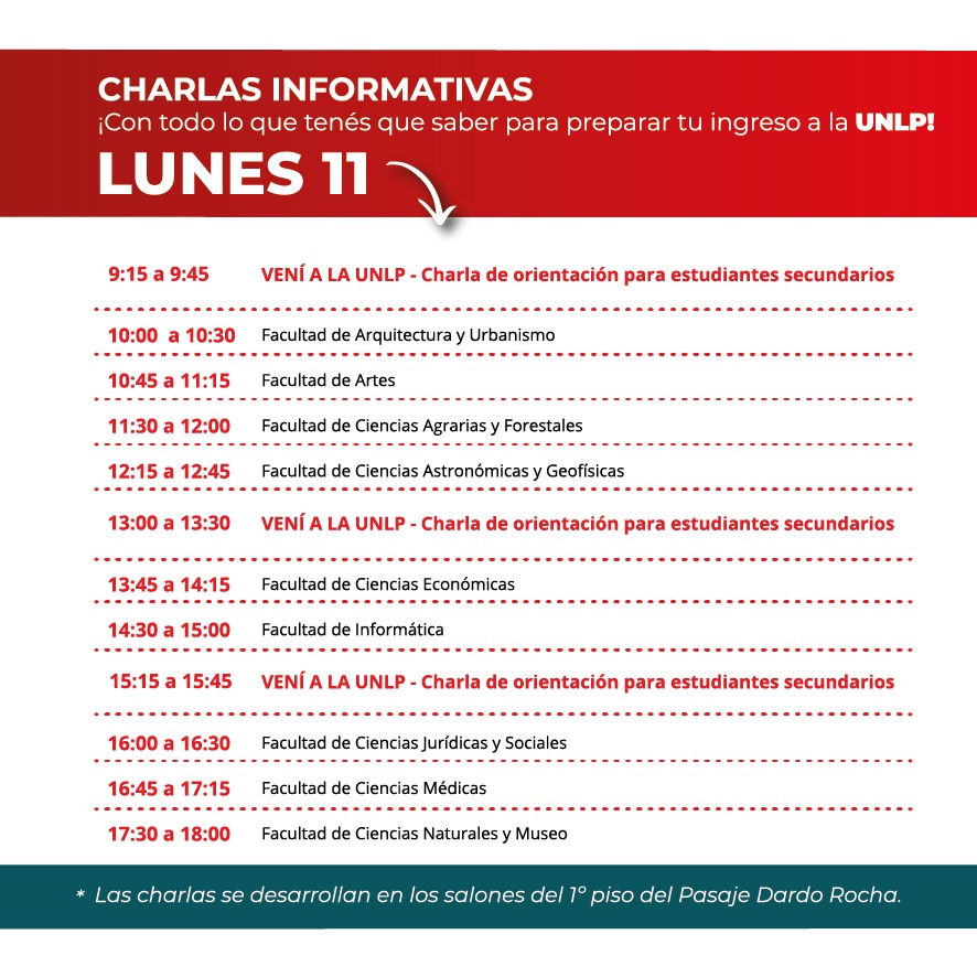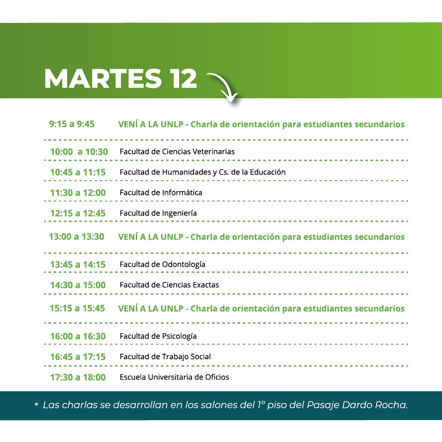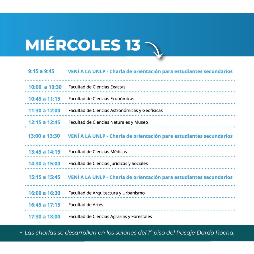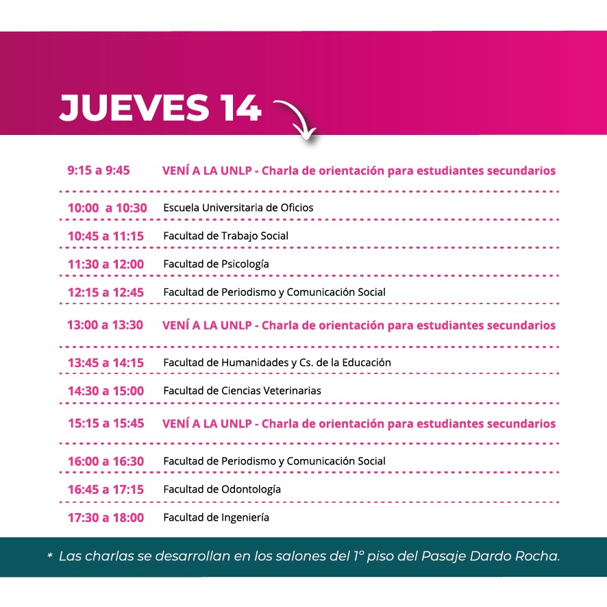 Además se realizan las charlas del Programa “Vení a la UNLP”, podés conocer la Biblioteca Pública y el trabajo de la Comisión Universitaria sobre Discapacidad para hacer una universidad inclusiva y accesible.