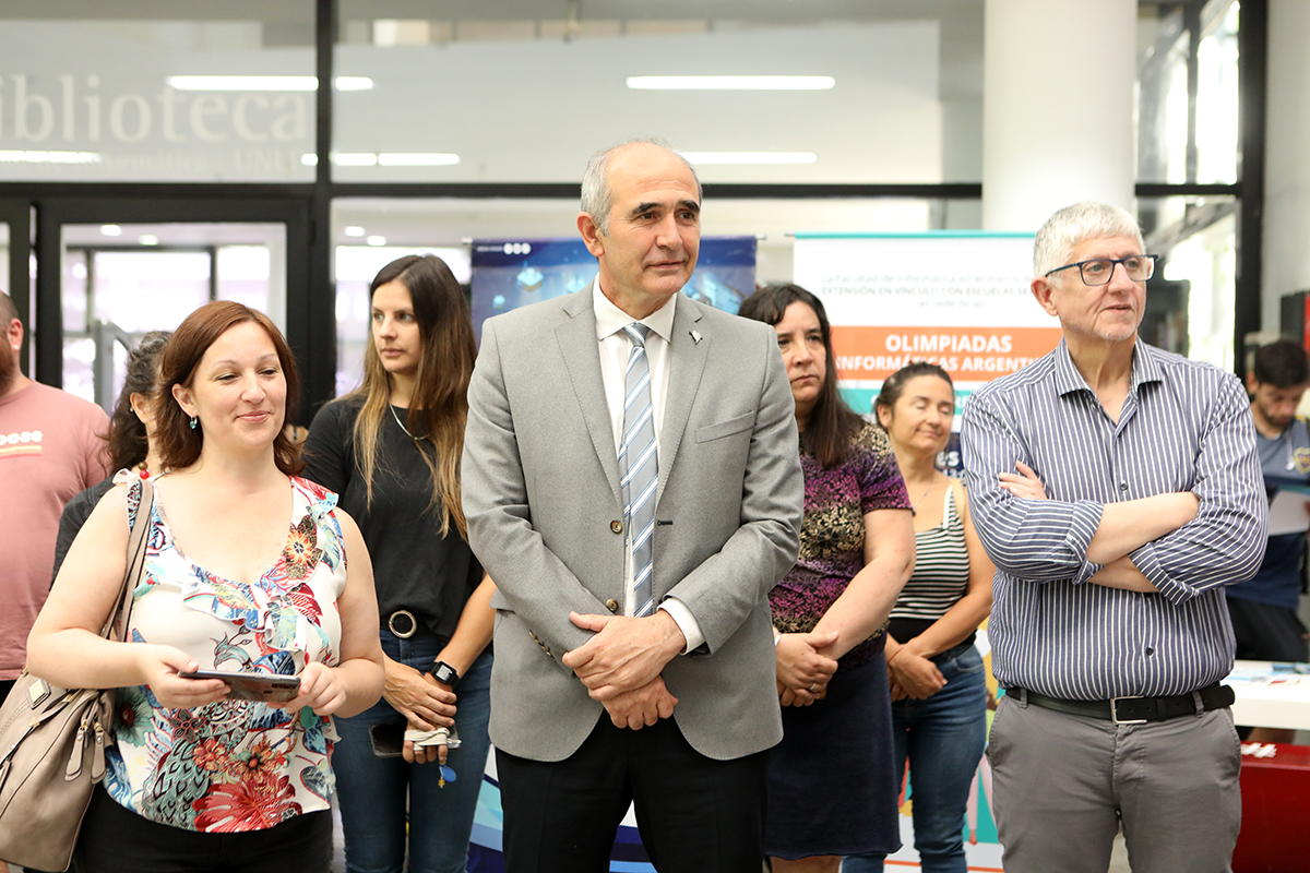 Estuvo acompañado por el secretario de Extensión Universitaria, Sebastián Palma, la directora del Consejo Social, Inés Iglesias, el decano de Informática, Marcelo Naiouf, y demás autoridades de la UNLP.