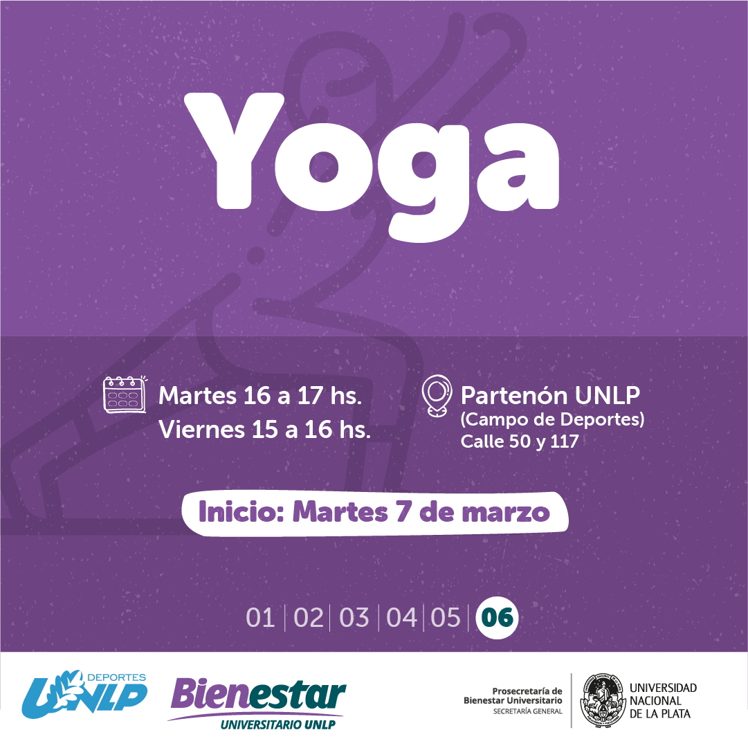 - Yoga se brinda por un lado los martes de 16 a 17hs y, a su vez, los viernes 15 a 16hs.