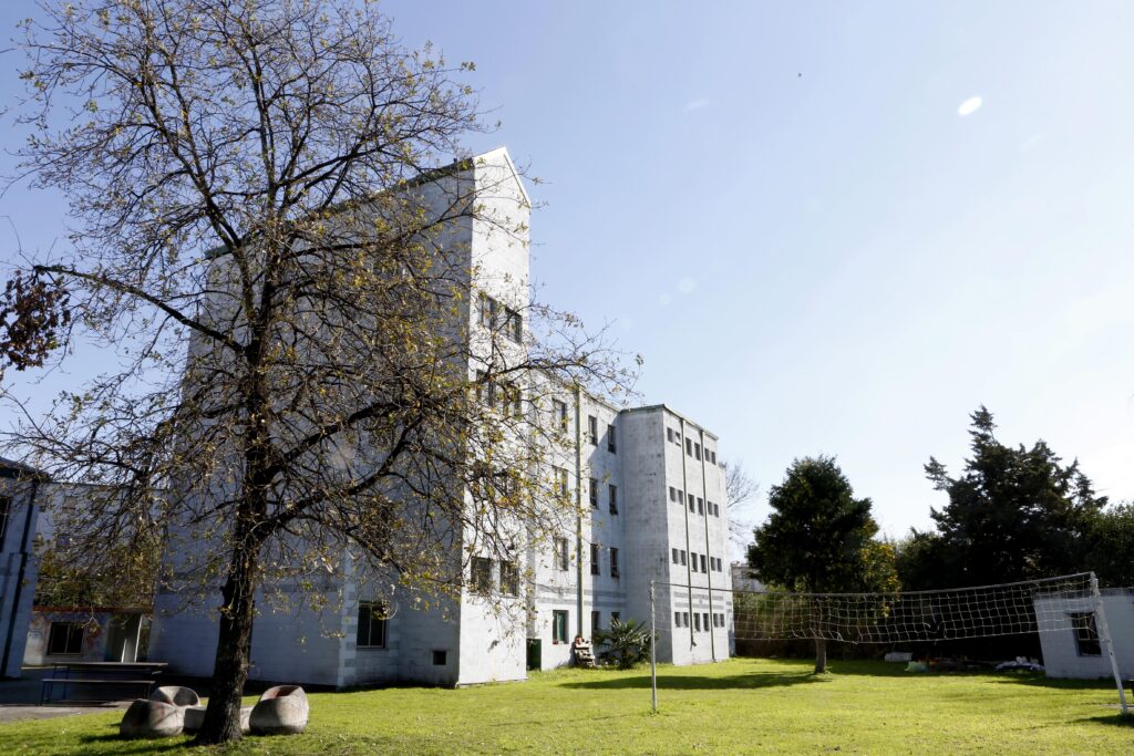 Situado en la esquina urbana del predio y sumado a los módulos habitacionales, existe un edificio de dos plantas que hace las veces de ‘‘cabecera’’ del complejo. Allí está el área administrativa y el comedor de unos 200m² cubiertos.
