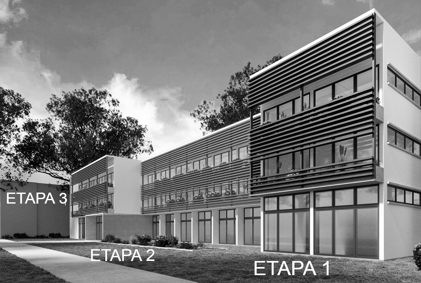 En el marco de la primera etapa se construirá una superficie cubierta de 580 m2 que, desarrollada en tres niveles, contendrán servicios generales y sistemas circulatorios verticales, hecho que permitirá más adelante avanzar con nuevas demoliciones y construcciones. Ello se complementará con unos 15m2 de espacios semicubiertos y unos 200 m2 de áreas exteriores re urbanizadas.