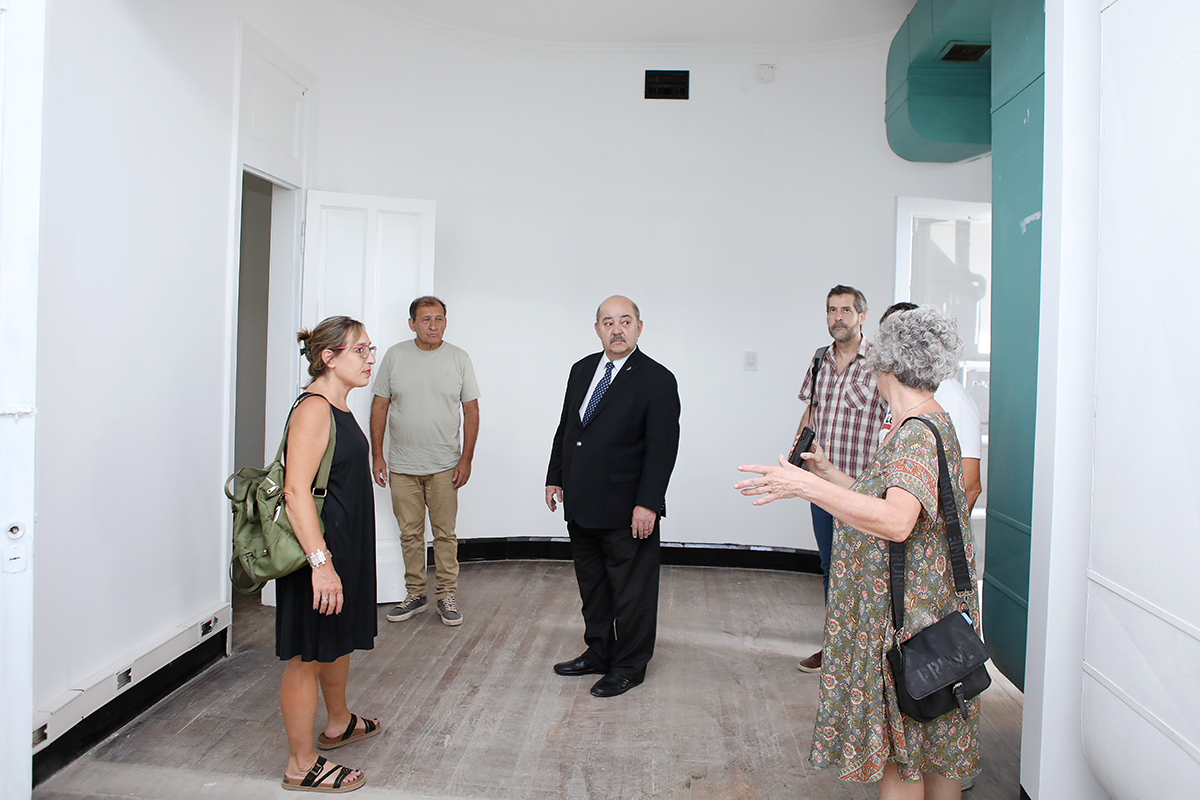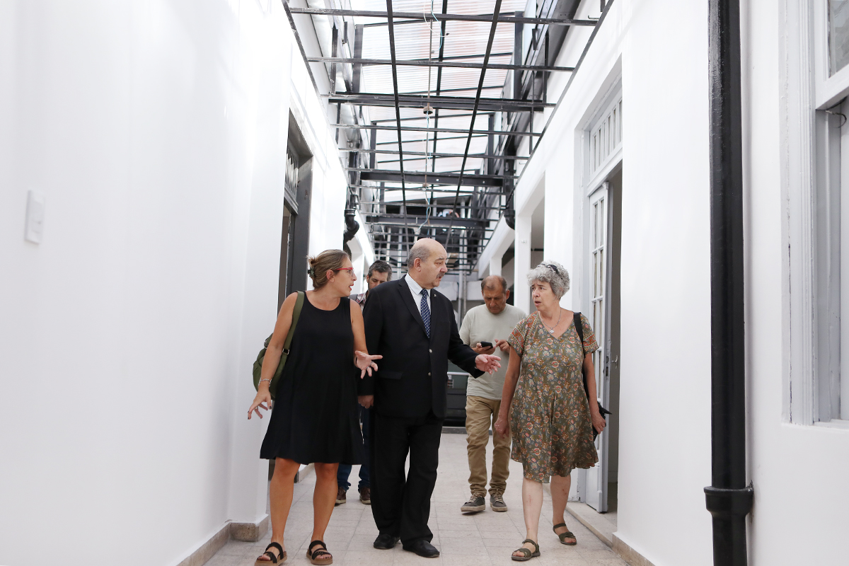 El vicepresidente Académico, Fernando Tauber, junto a la decana de la Facultad de Humanidades y Ciencias de la Educación, Ana Julia Ramírez, y la directora de la institución, Anahí Cuestas, recorrieron esta mañana las instalaciones donde funcionará el servicio educativo para el aprendizaje de las lenguas extranjeras de la Universidad platense.