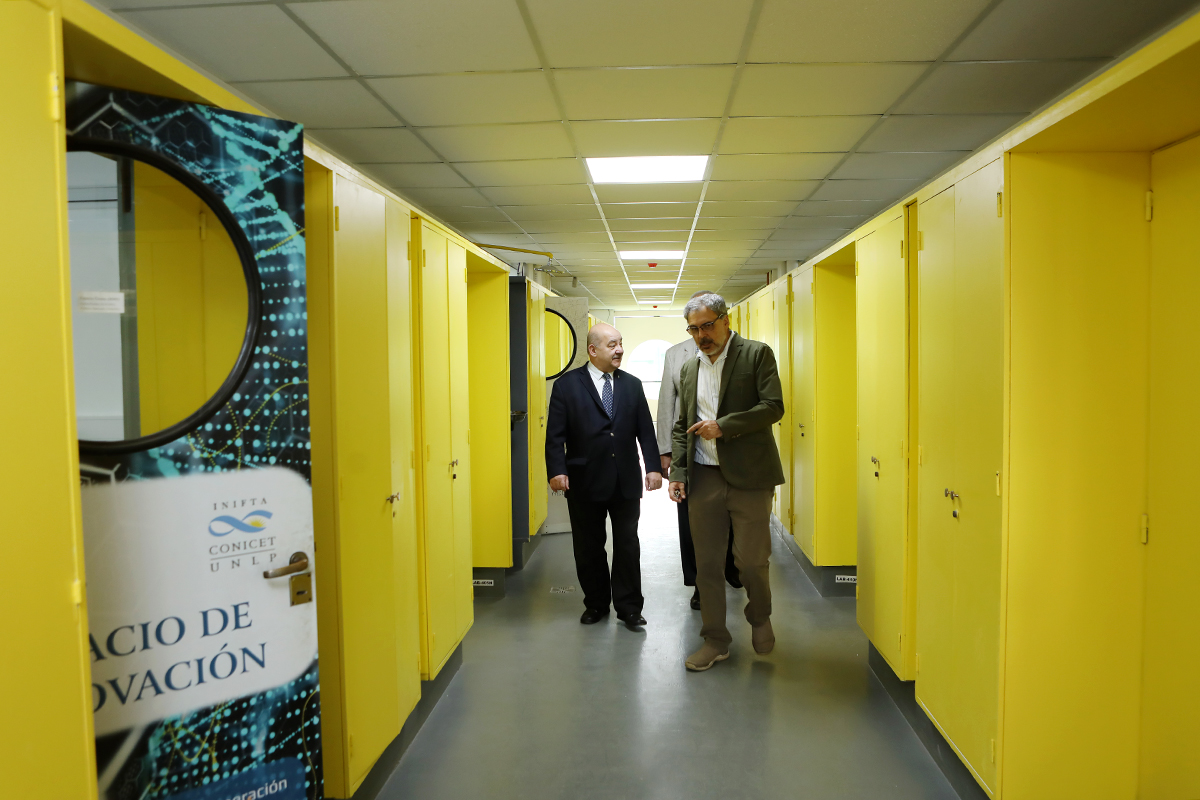 Estuvo acompañado por el decano de Ciencias Exactas, Mauricio Erben y el director del Instituto, Félix Requejo. También participó del acto el secretario de Ciencia y Técnica, Nicolás Rendtorff; el secretario de Planeamiento, Obras y Servicios, Diego Delucchi; el titular de CCT-CONICET La Plata, Gonzalo Veiga, investigadores y técnicos que se desempeñan en los diferentes laboratorios.