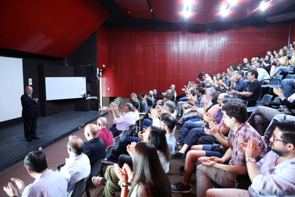 Tras recorrer el edificio, Tauber fue recibido en el Salón Auditorio por un centenar de investigadores, técnicos, personal de apoyo y administrativos. Allí, al hacer uso de la palabra, el vicepresidente de la UNLP compartió su emoción con los presentes: “es una gran alegría estar aquí celebrando con todos ustedes.