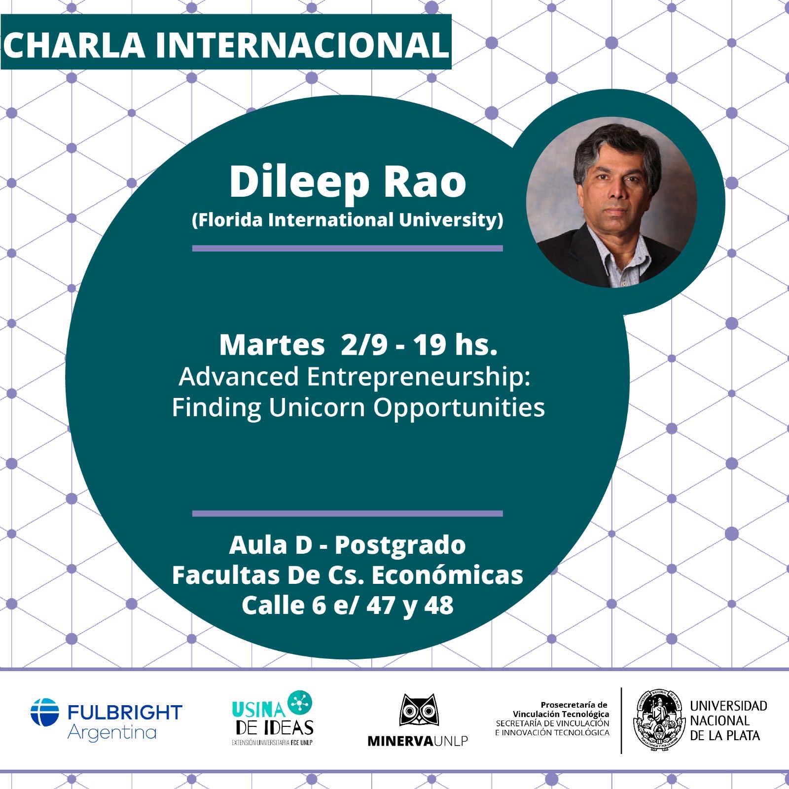 La Prosecretaría de Vinculación Tecnológica de la Universidad Nacional de La Plata invita al ciclo de actividades sobre creación y financiamiento de Empresas de Base Tecnológica, que se desarrollará en el mes de septiembre en distintos espacios de la UNLP. Las jornadas estarán a cargo del prestigioso Prof. Dileep Rao, especialista de la Florida International University (FIU), referente internacional en innovación y emprendimiento.