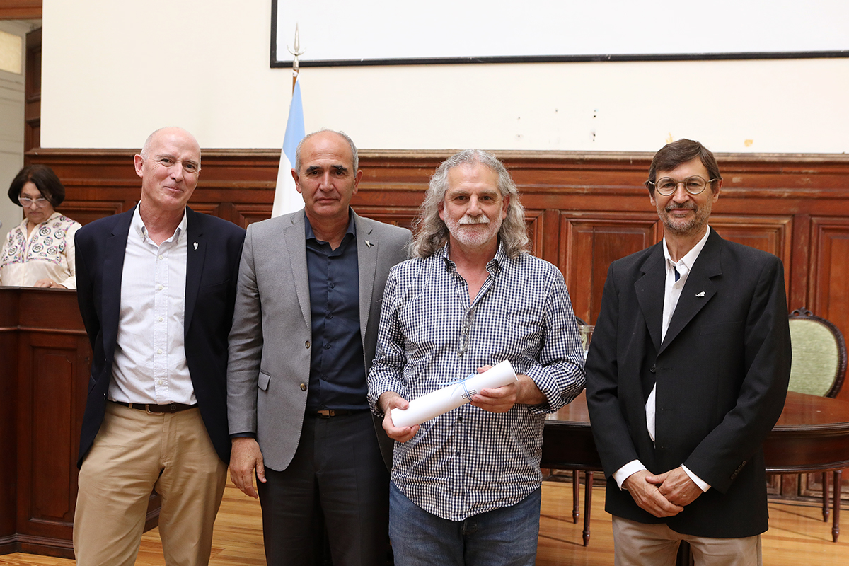 El presidente de la UNLP, Martín López Armengol, acompañado por el decano de la Facultad, Ricardo Andreau, y el vicedecano, Gabriel Keil, encabezaron la ceremonia que tuvo lugar en el Aula Magna “Ing. Agr. Andrés Ringuelet” de la unidad académica.