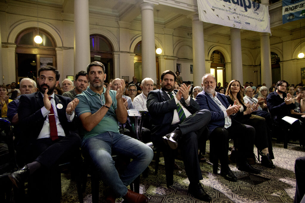 En la ceremonia participaron la vicepresidenta Institucional de la casa de estudios, Andrea Varela; el jefe de Gabinete, Carlos Giordano; el secretario de Administración y Finanzas, Claudio Canosa; el secretario de Asuntos Jurídicos y Legales, Rafael Clark; el Secretario de Vinculación Tecnológica, Javier Díaz; el secretario de Extensión, Sebastián Palma; el prosecretario Legal y Técnico, Gerardo Campidoglio; el secretario General de ADULP, Octavio Miloni; representantes de la FULP; decanos, funcionarios y familiares del homenajeado.