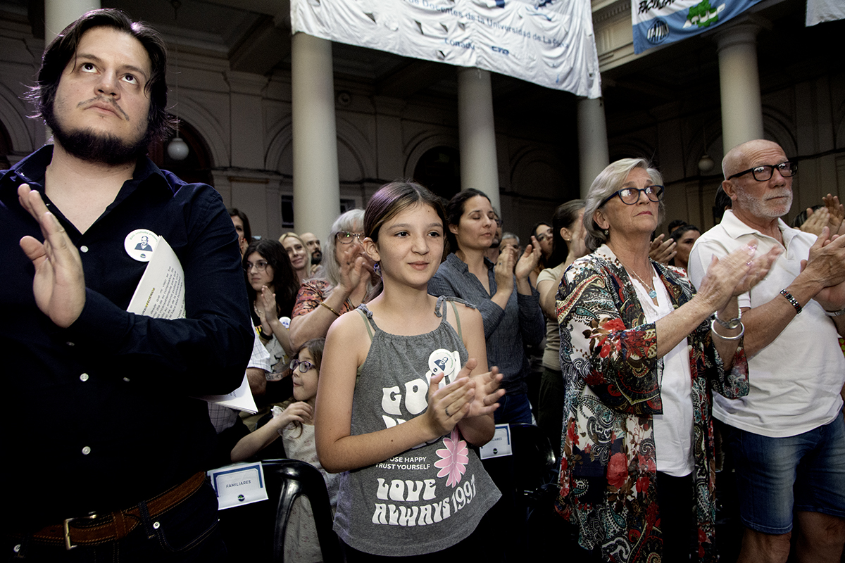 La ceremonia tuvo lugar en el patio Julieta Lanteri, y sirvió de marco para la presentación oficial de la propuesta de designación de Raúl Archuby como “Doctor Honoris Causa Post Mortem” de la UNLP.