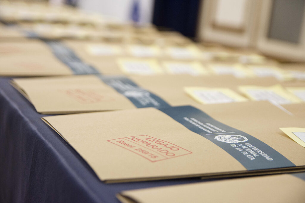 La reparación de legajos tiene como propósito dejar constancia de la condición de víctimas del terrorismo de Estado de quienes formaron parte de la comunidad universitaria: estudiantes, docentes, Nodocentes, graduadas y graduados.