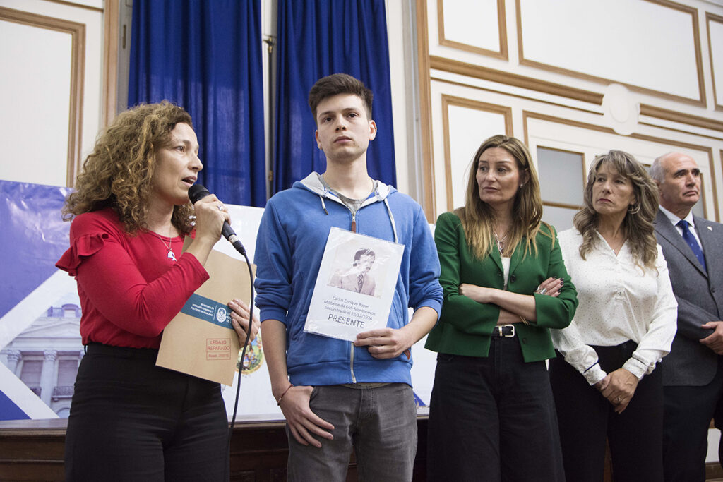 En el marco del Programa de Reparación de Legajos, impulsado por la Dirección de Políticas de Memoria y Reparación de la Universidad Nacional de La Plata, la Facultad de Ciencias Jurídicas y Sociales realizó hoy el Acto Homenaje y Entrega de Legajos Reparados de integrantes de su comunidad víctimas del terrorismo de Estado.