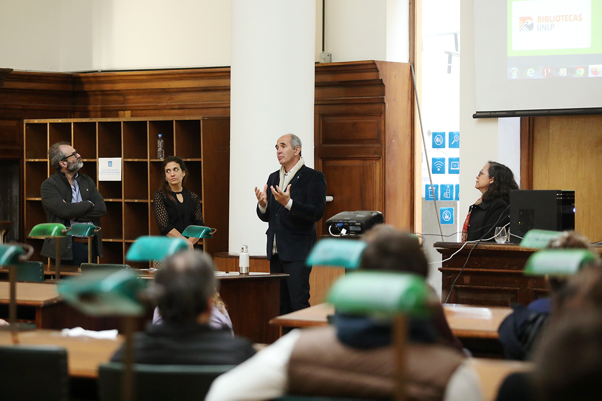 El presidente de la UNLP, Martín López Armengol, participó del acto que tuvo lugar en la Biblioteca Pública de la UNLP, acompañado por el secretario General, Patricio Lorente, la titular del Archivo Histórico, Laura Casaretto, y la directora de la Biblioteca Pública, Marcela Fushimi, entre otras autoridades.