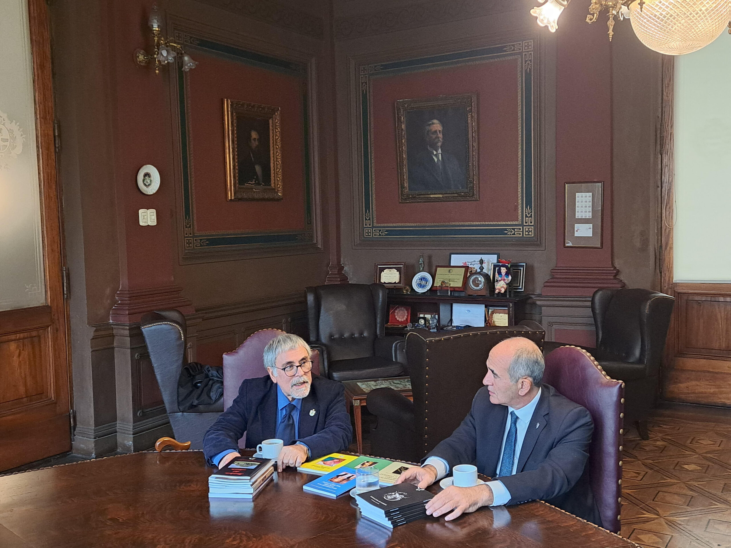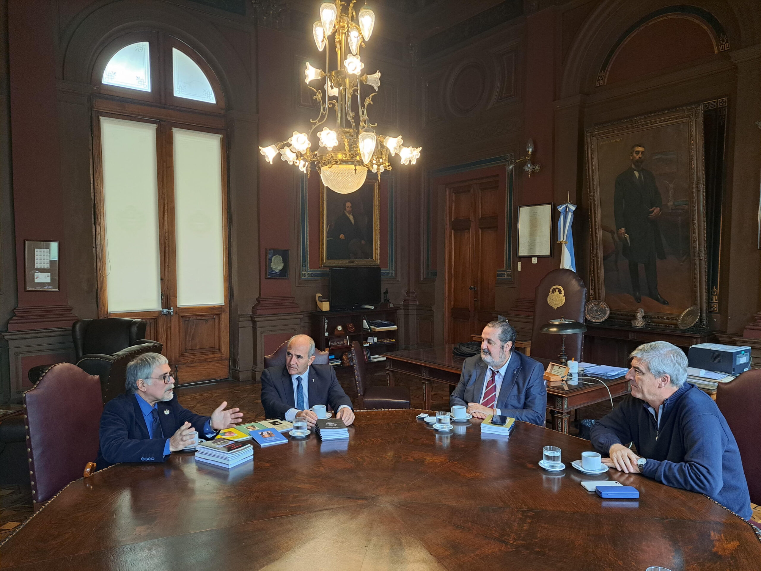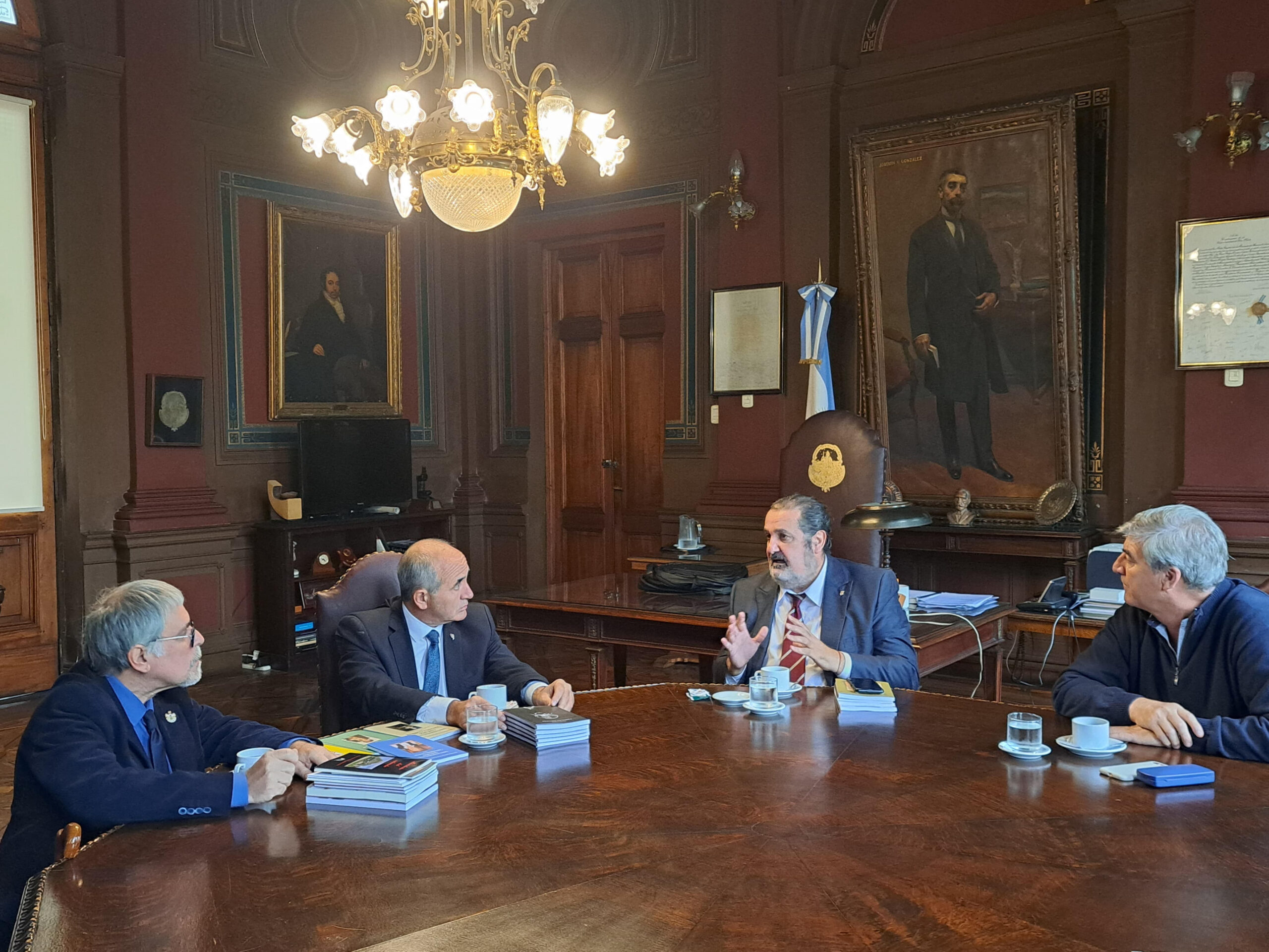 El presidente de la Universidad Nacional de La Plata, Martín López Armengol, mantuvo un encuentro con las autoridades de la Sociedad Argentina de Escritores (SADE) donde se entregaron los trabajos premiados en el concurso literario en homenaje a “Joaquín V. González”. De la reunión también participó el secretario de Relaciones Institucionales, Javier Mor Roig, Guillermo Pilia, secretario General de SADE y Hugo Mársico, secretario General de la filial La Plata, entre otras autoridades.