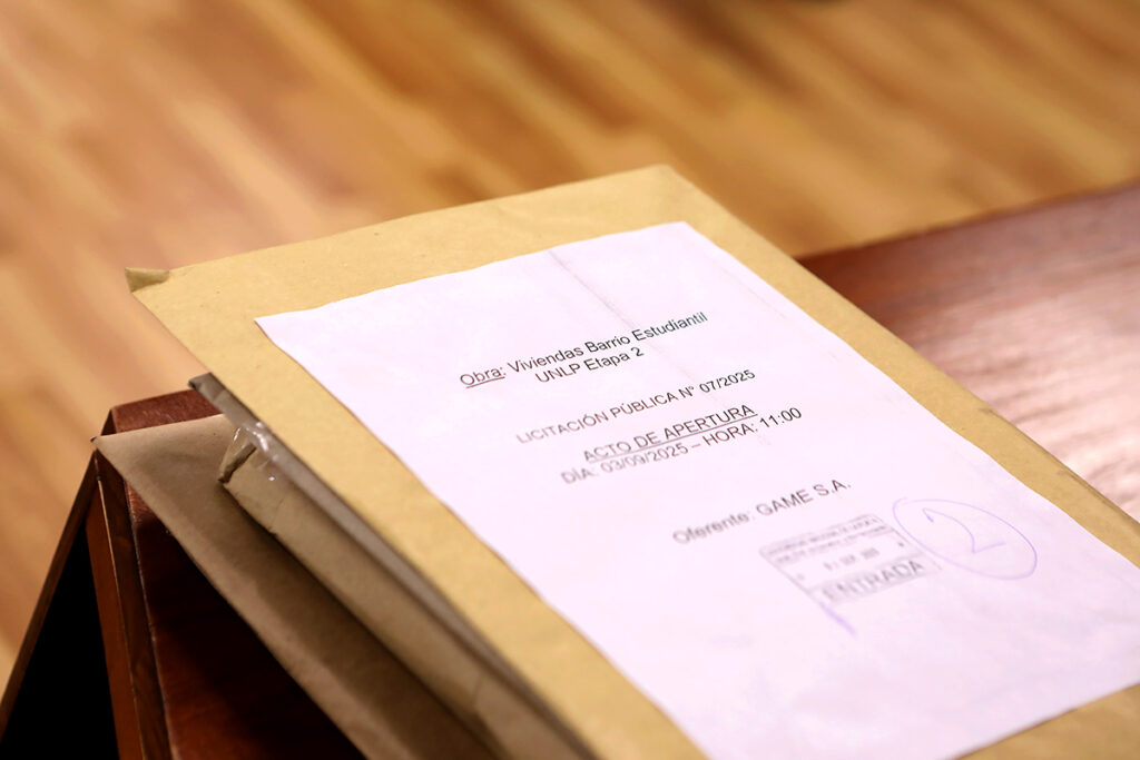 La licitación pública titulada Obra “viviendas barrio estudiantil UNLP, etapa 2” – contemplada en el expediente 3000-75/2025 – tuvo lugar en el Aula 105 del edificio Sergio Karakachoff. Se presentaron 10 empresas oferentes.