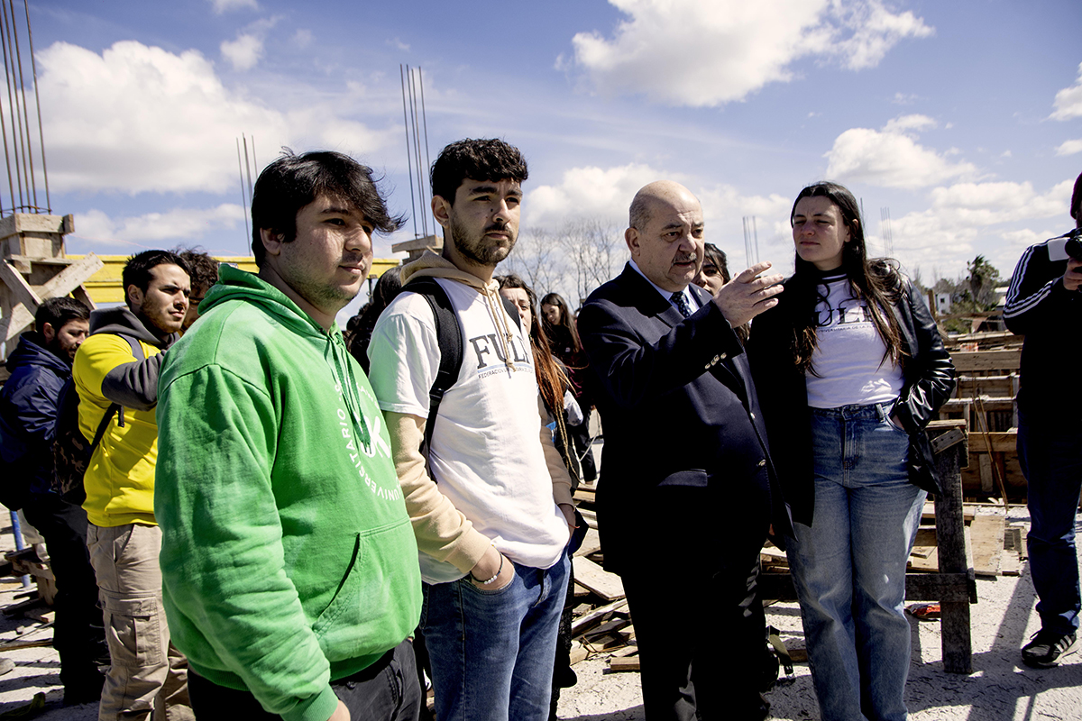 El vicepresidente de la Universidad Nacional de La Plata, Fernando Tauber, recorrió este mediodía las obras en ejecución del primer barrio universitario estudiantil que se levanta en el “Campo 6 de Agosto”, en Berisso. Actualmente se construyen 24 viviendas que forman parte de la primera etapa de este proyecto que está a la vanguardia en la búsqueda de soluciones a la problemática habitacional de los estudiantes.