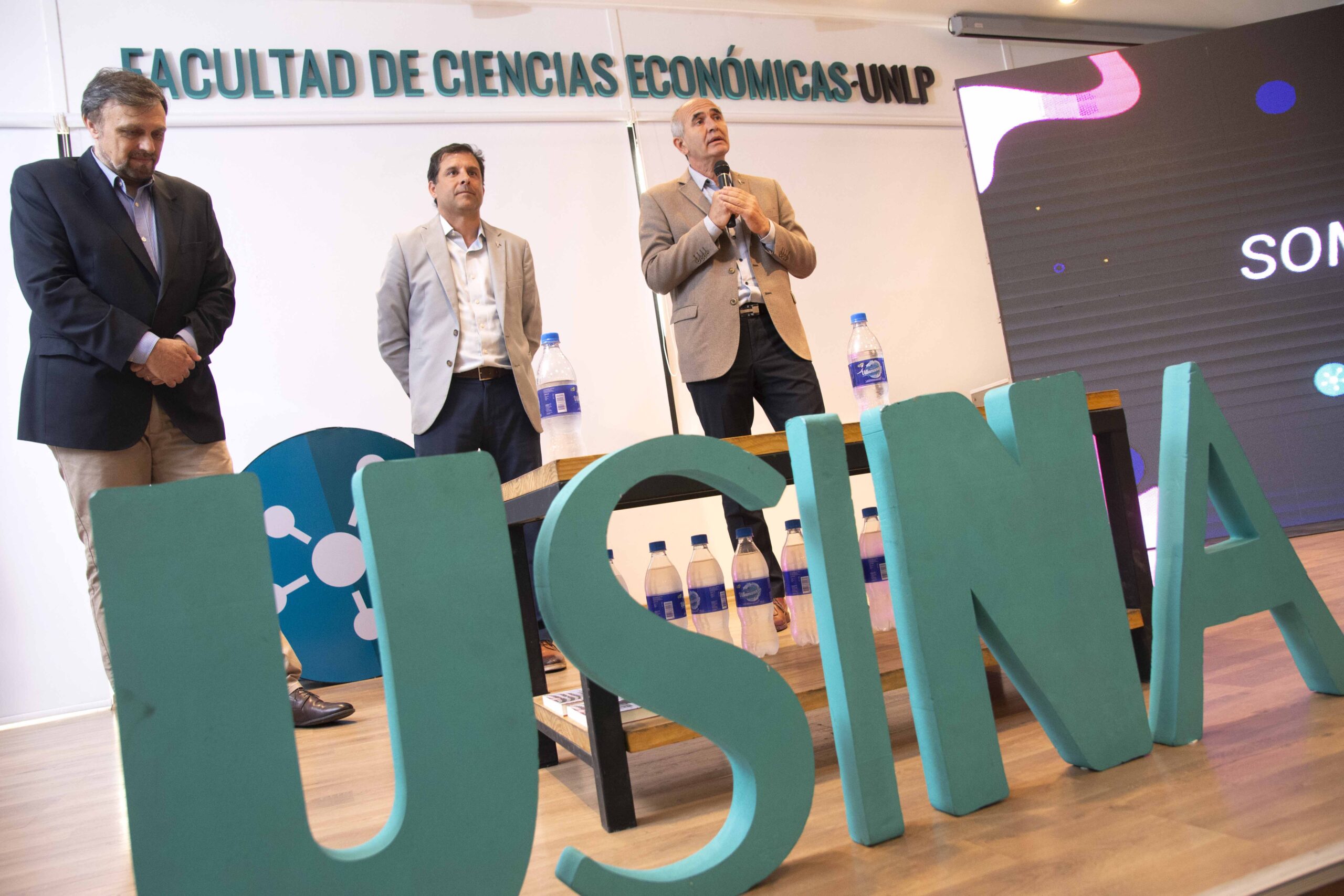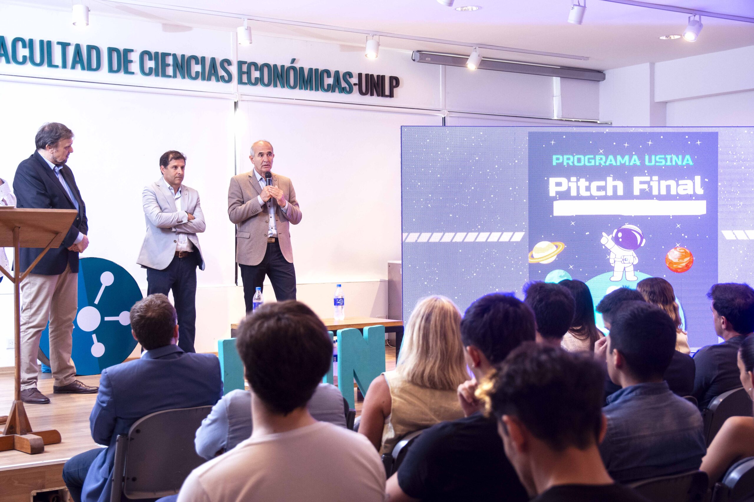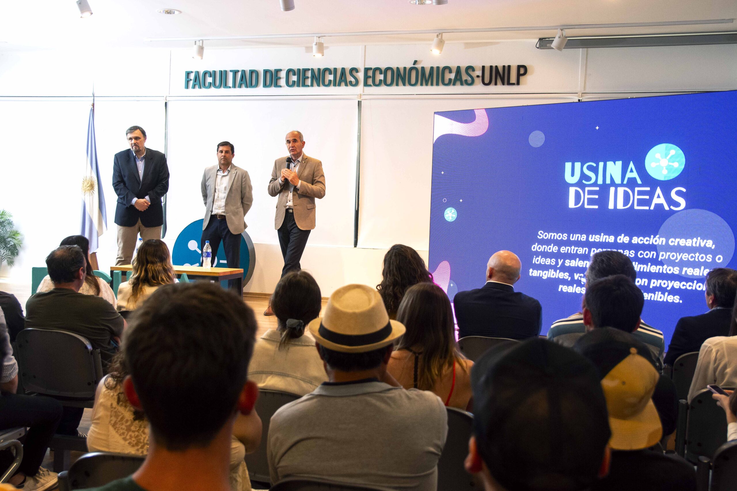 El presidente de la Universidad Nacional de La Plata, Martín López Armengol, junto al decano de Ciencias Económicas, Eduardo De Giusti, participó del cierre de la 8ª edición del Programa Usinas de Ideas. También asistieron autoridades y docentes de la unidad académica, y referentes de emprendedurismo de la región.