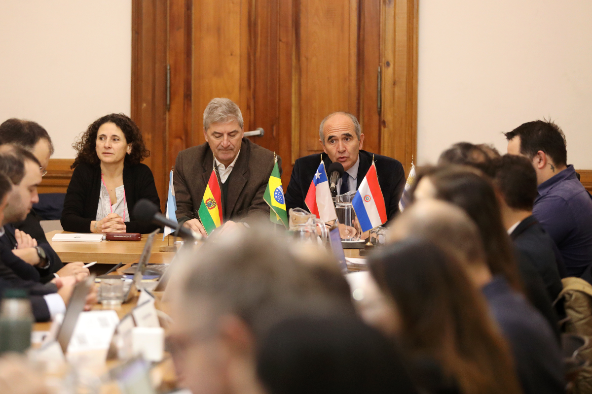 El presidente de la UNLP, Martín López Armengol, acompañado por el secretario de Relaciones Institucionales, Javier Mor Roig, la prosecretaria de Relaciones Internacionales, Graciela Humbert Lan y Fernando Sosa, encargado de programas y proyectos del Grupo Montevideo, encabezaron esta mañana la apertura del encuentro en el Rectorado.