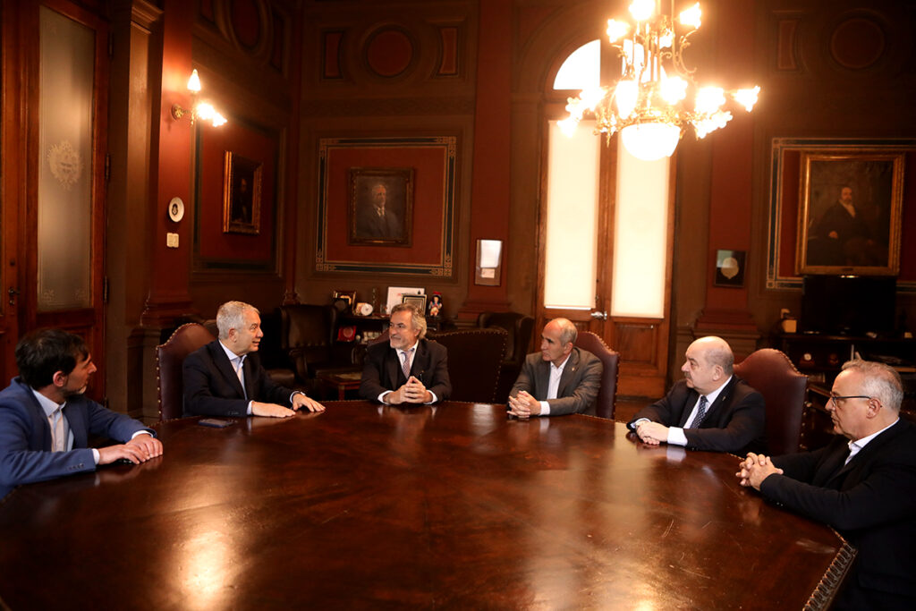 El presidente de la Universidad Nacional de La Plata, Martín López Armengol y su vicepresidente Académico, Fernando Tauber, recibieron en el Rectorado al intendente municipal, Julio Alak y al empresario energético, Jorge Rodríguez. El encuentro, del que también participó el prosecretario de Planeamiento, Obras y Servicios, Agustín Olivieri, tuvo lugar en el marco de un plan que contempla la renovación de la iluminación exterior del histórico edificio de la presidencia de la casa de estudios platense.