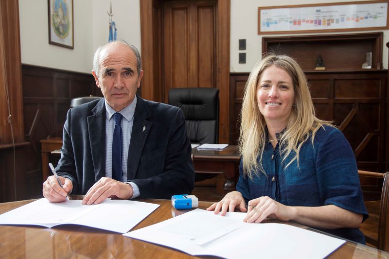 El presidente de la Universidad Nacional de La Plata, Martín López Armengol firmó hoy en el Rectorado un convenio marco con el Colegio de Dietistas, Nutricionistas y Licenciados en Nutrición de la provincia de Buenos Aires, representado por su titular, Lic. Laura Salzman. Del encuentro participó también el Secretario general de la UNLP, Patricio Lorente.