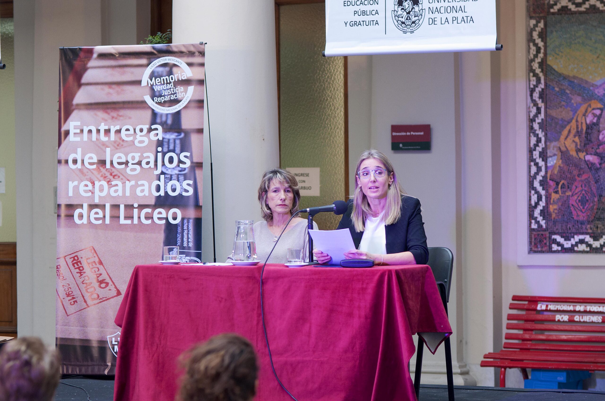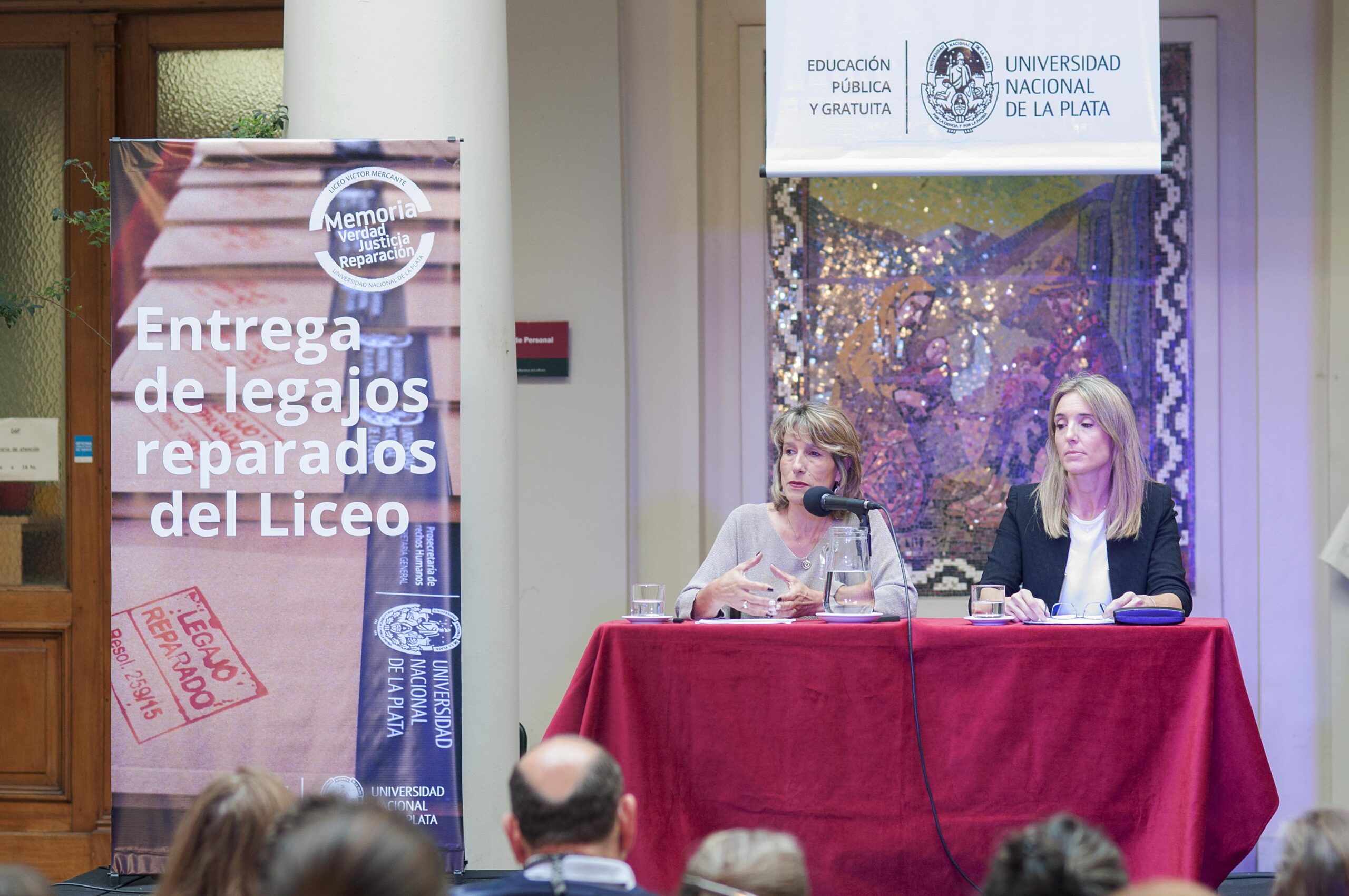 La Universidad Nacional de La Plata entregó 43 legajos reparados a familiares y compañeras y compañeros de integrantes del Liceo Víctor Mercante, que fueron víctimas del terrorismo de estado, en su mayoría estudiantes.