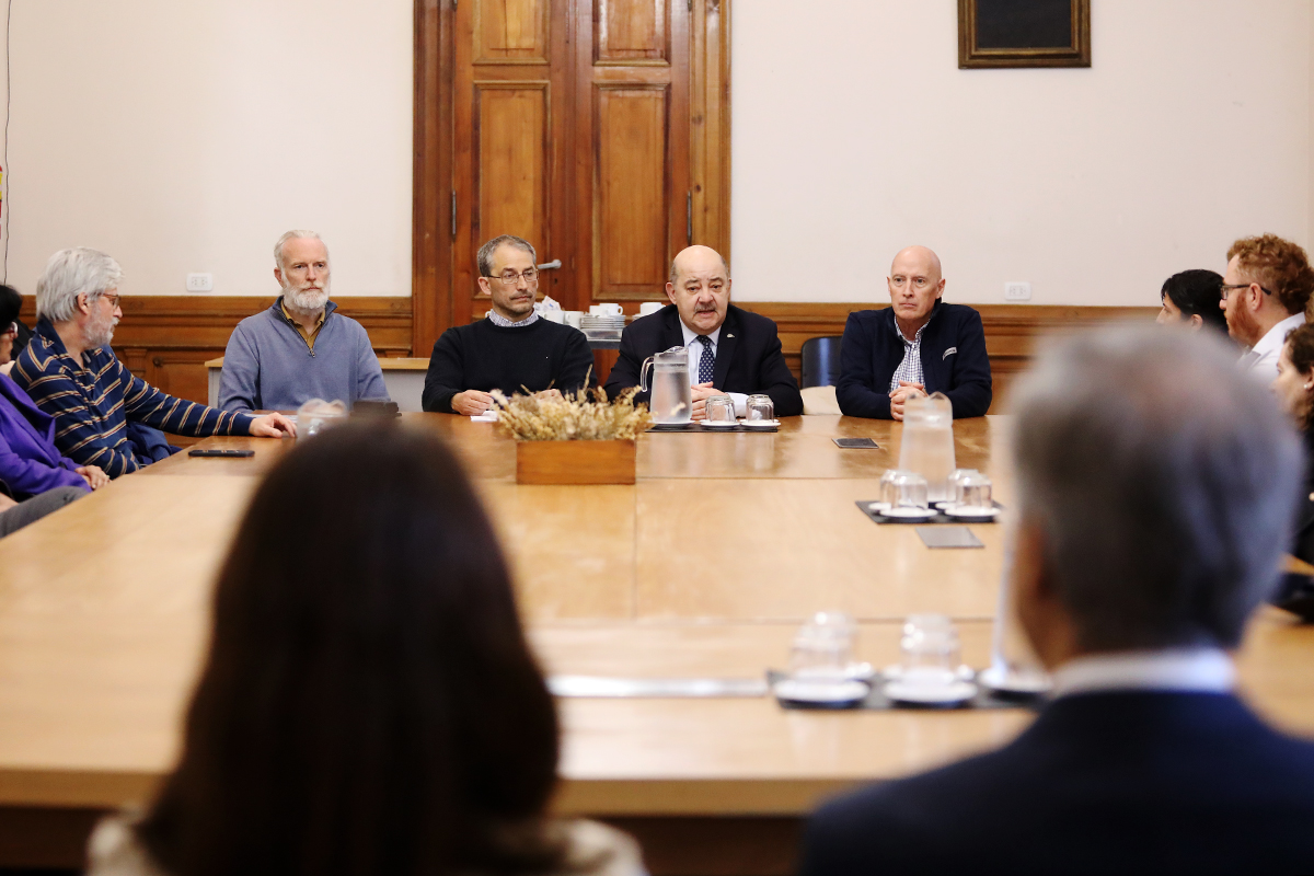 El vicepresidente de la Universidad Nacional de La Plata, Fernando Tauber, recibió a los docentes e investigadores cuyos proyectos resultaron seleccionados en la convocatoria de Financiamiento de Proyectos de Vinculación Tecnológica 2025. Del encuentro también participó el prosecretario de Vinculación Tecnológica de la UNLP, Gonzalo Márquez, el decano de Ciencias Exactas, Mauricio Erben y el decano de Ciencias Agrarias y Forestales, Ricardo Andreau.