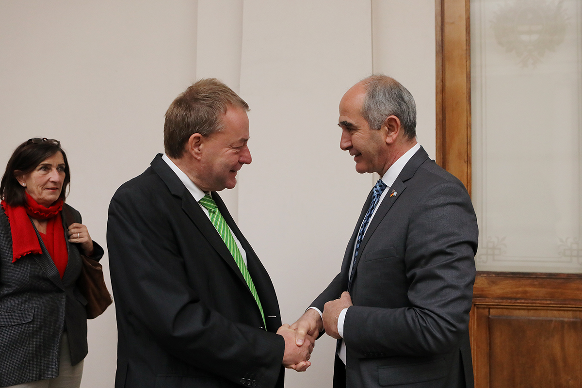 El presidente de la Universidad Nacional de La Plata, Martín López Armengol, recibió esta mañana al embajador de Alemania, Dieter Lamlé. Durante el encuentro, que se llevó a cabo en el edificio del Rectorado, el diálogo giró en torno a los proyectos que actualmente se realizan de forma conjunta y sobre futuros programas de cooperación internacional con ese país europeo.