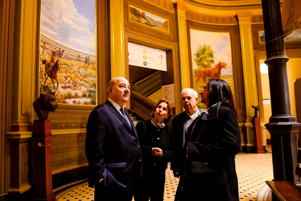 El vicepresidente aprovechó además la oportunidad para recorrer los espacios remodelados del subsuelo del edificio donde se alojan las distintas colecciones, y también dialogó con las autoridades acerca de las nuevas obras que ya fueron licitadas y que comenzarán en los próximos días para poner en valor las cubiertas de la envolvente arquitectónica del histórico inmueble.