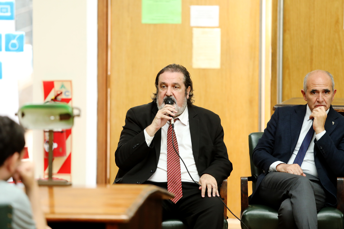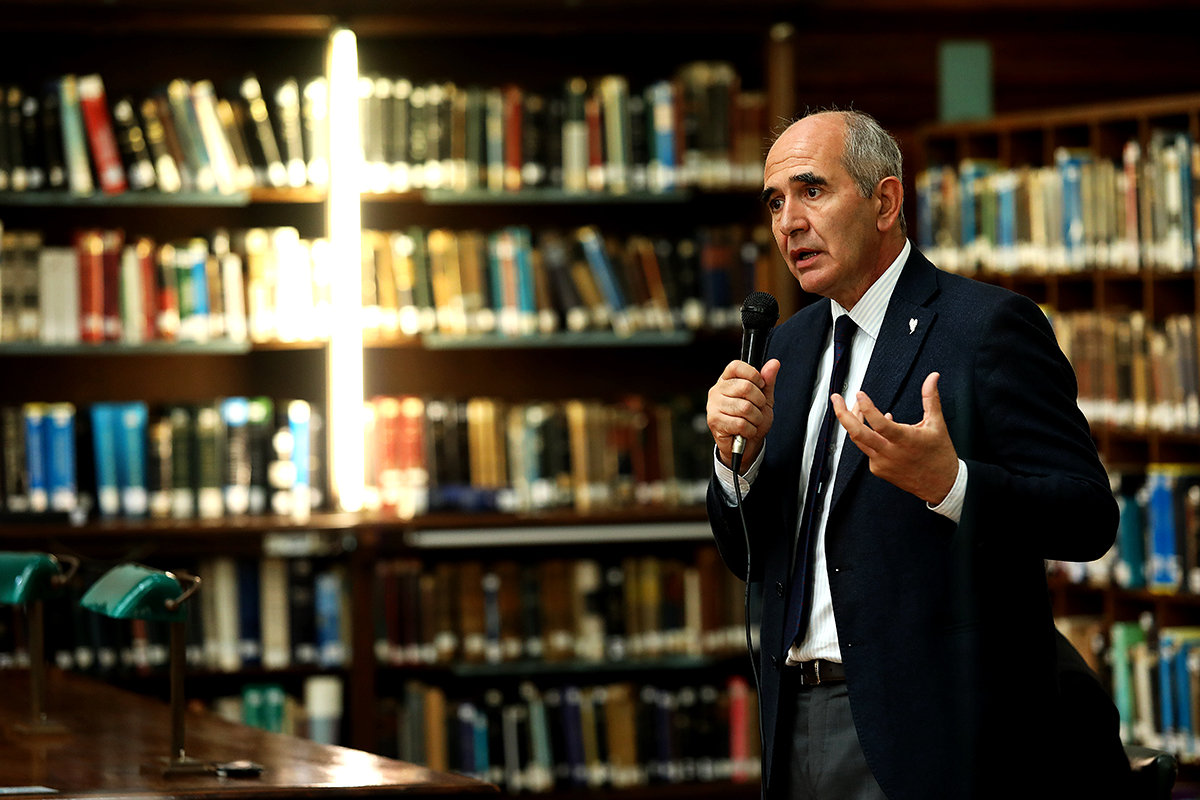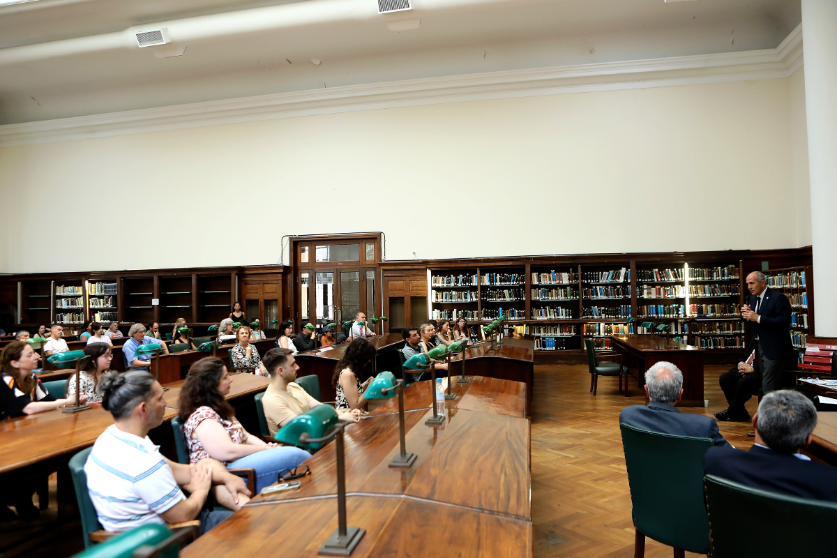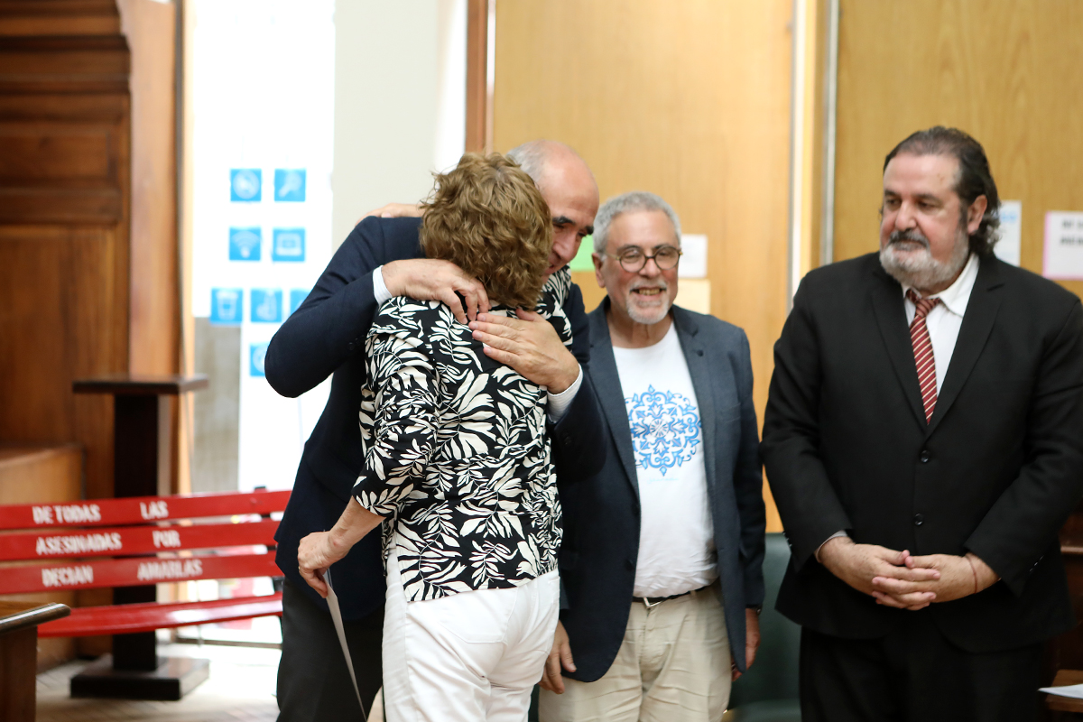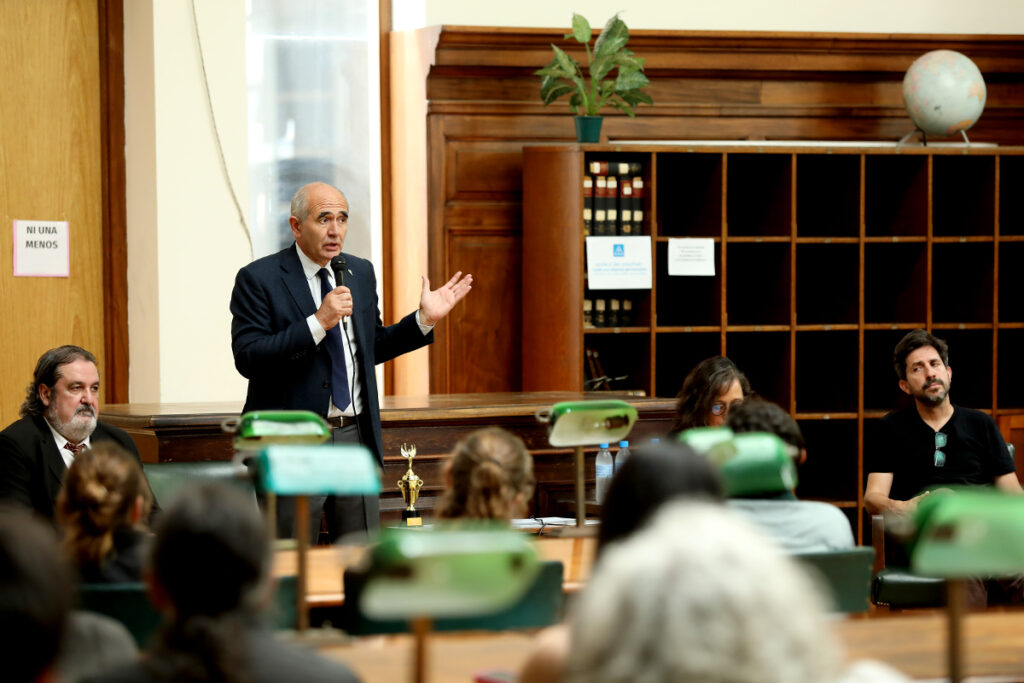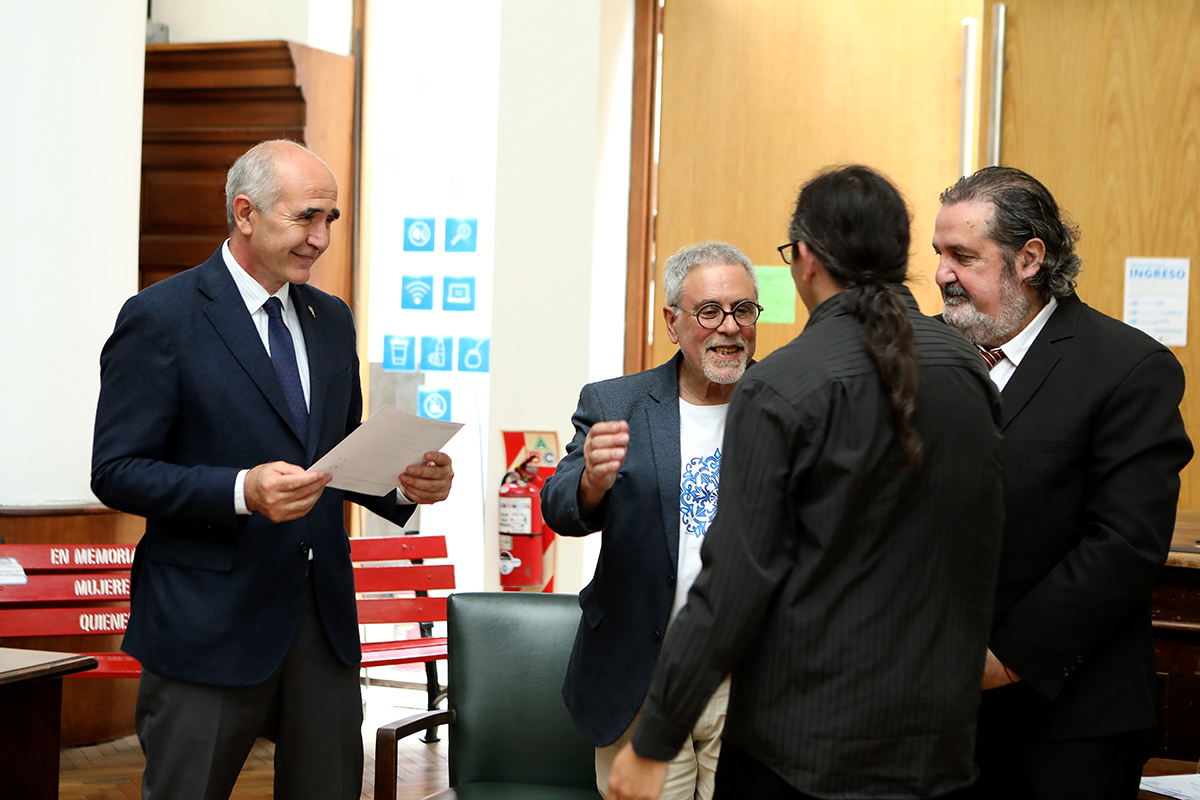 El presidente de la UNLP, Martín López Armengol, encabezó el acto que tuvo lugar en la Sala de lectura Silenciosa de la Biblioteca. Estuvo acompañado por la directora de la institución, Marcela Fushimi, el secretario de Ciencia y Técnica, Nicolás Rendtorff, y el titular de la Sociedad Argentina de Escritores (SADE – Filial La Plata), Hugo Mársico.