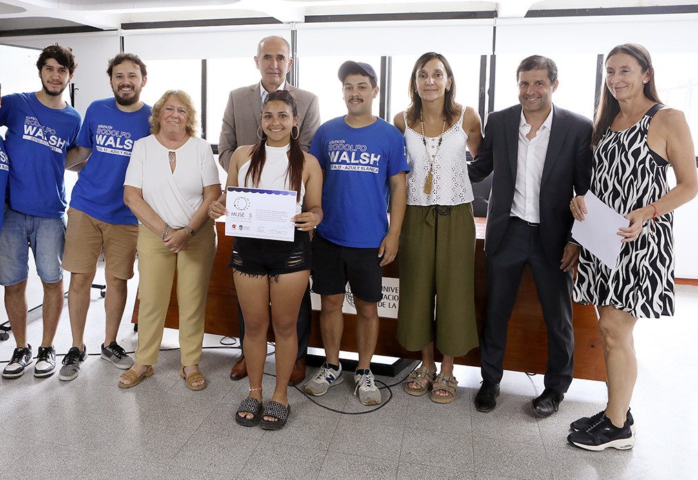 El presidente de la Universidad Nacional de La Plata, Martín López Armengol, hizo entrega esta mañana de certificados a los estudiantes de las carreras de Periodismo y Licenciatura en Turismo que participaron de la organización y difusión de “Museos a la Luz de la Luna”. Estuvo acompañado por el decano de Ciencias Económicas, Eduardo De Giusti, la decana de Periodismo y Comunicación Social, Ayelén Sidun, y la coordinadora de la Red de Museos de la UNLP, Alicia Loza.