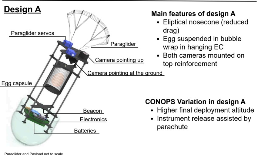 Como desafío adicional, el CanSat debe liberar un huevo a unos dos metros del suelo, el cual debe llegar intacto, lo que implica un diseño preciso de desaceleración y control del sistema.