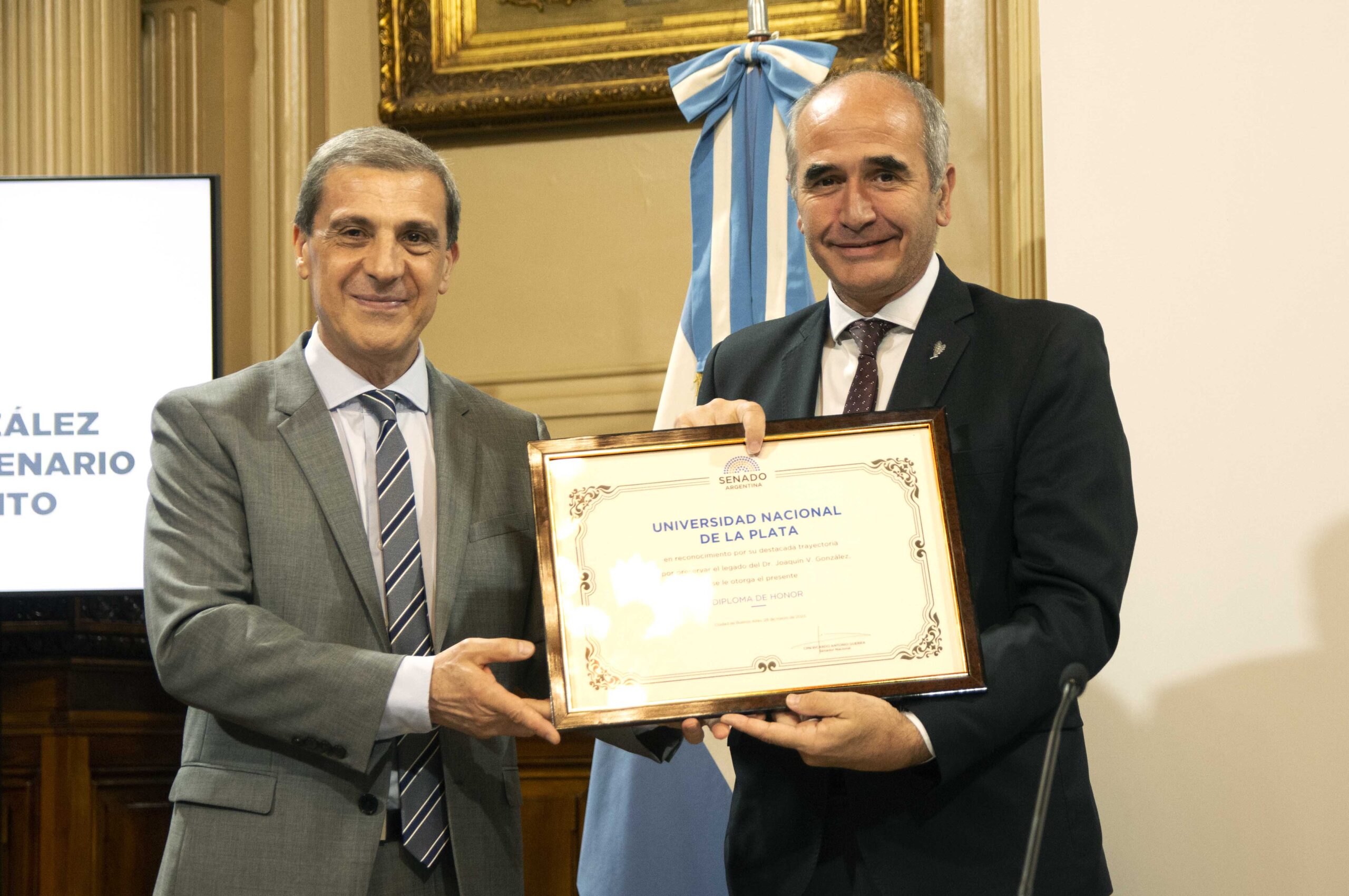 El presidente de la Universidad Nacional de La Plata, Martín López Armengol, participó del acto homenaje al fundador de la casa de estudios platense, doctor Joaquín V. González que organizó el senador nacional por La Rioja, Ricardo Guerra, con motivo del centenario de su fallecimiento.
