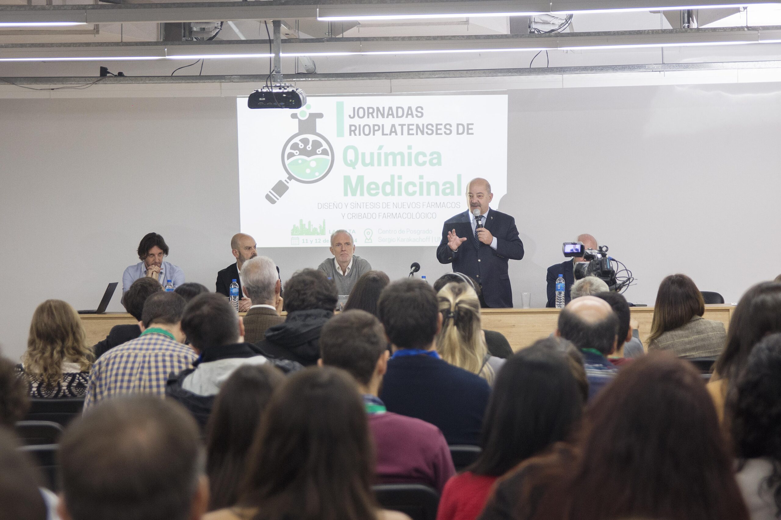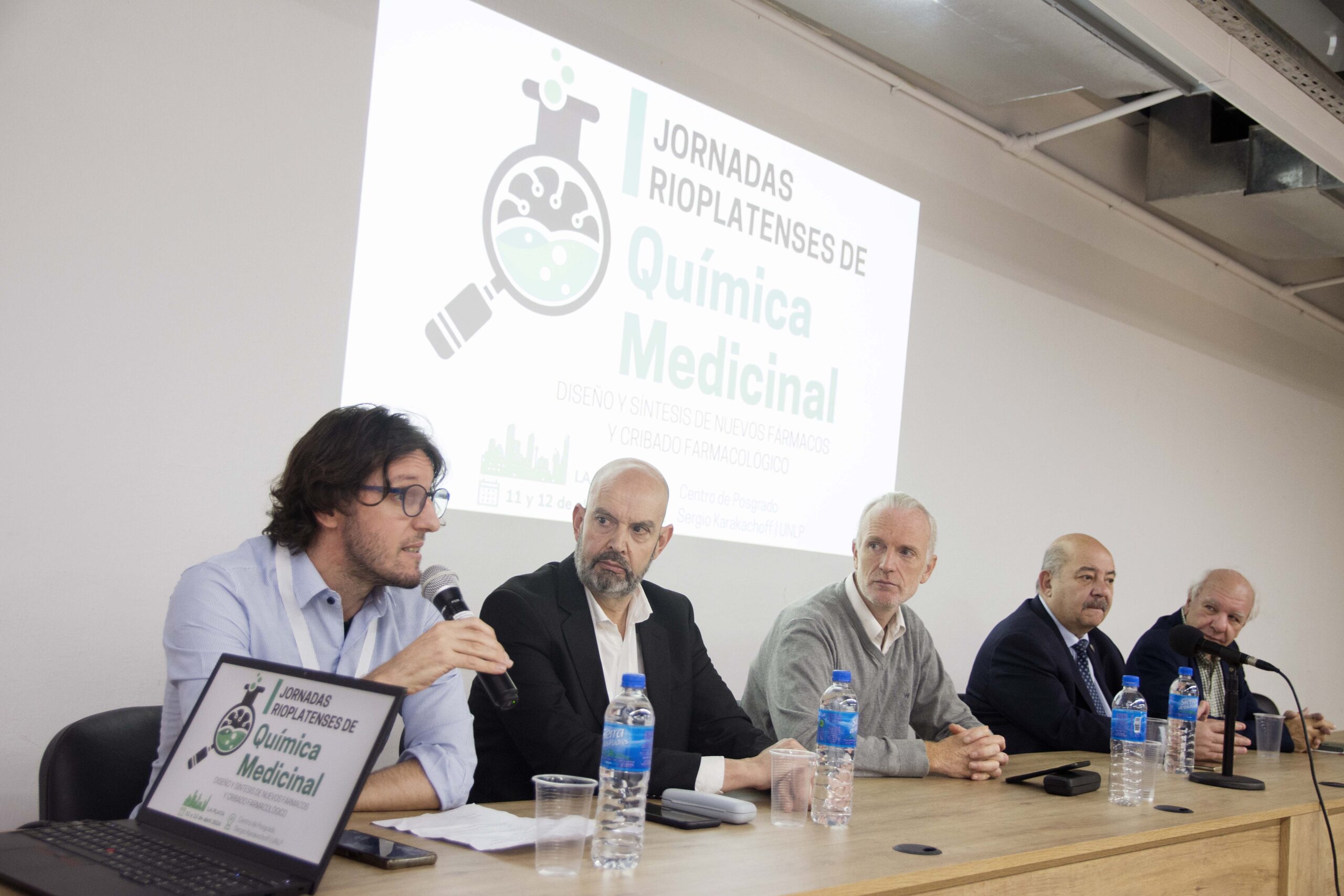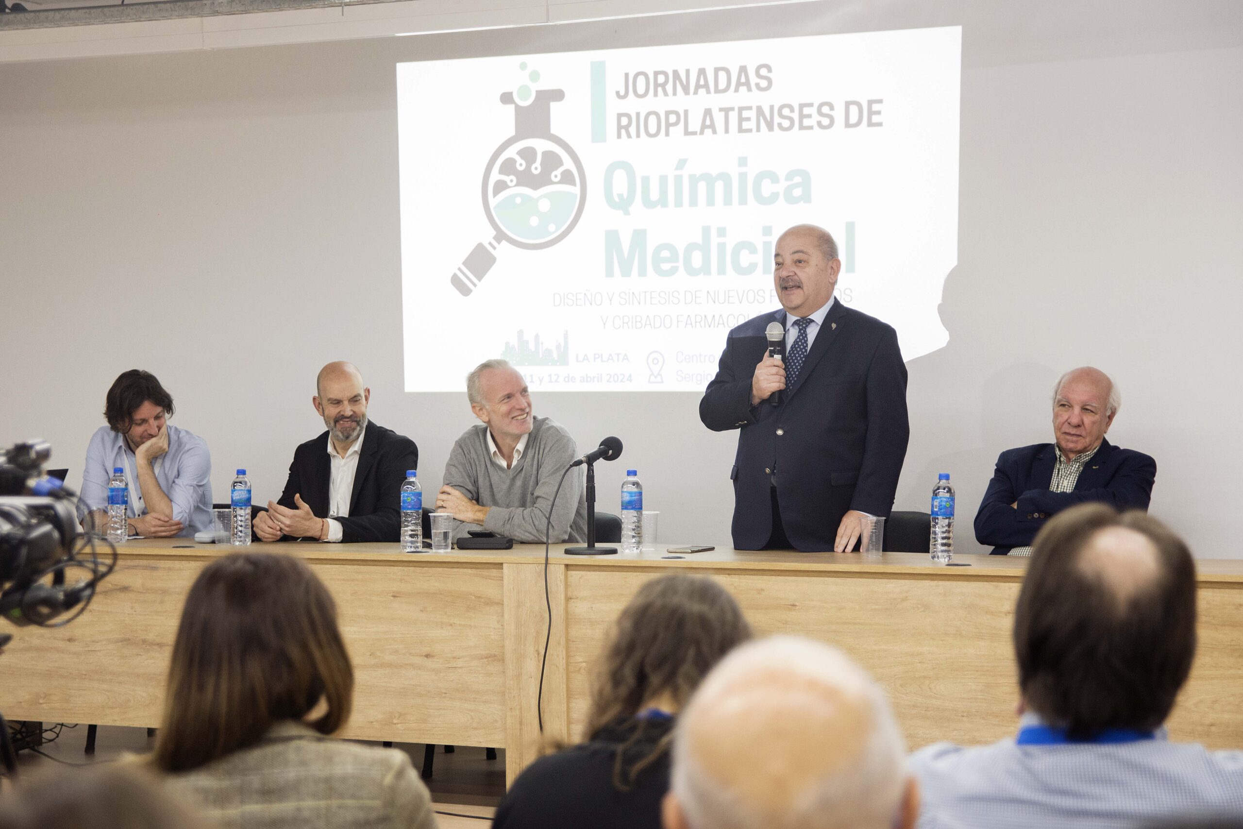 El vicepresidente Académico de la Universidad Nacional de La Plata, Fernando Tauber, participó esta mañana del acto de apertura de las Primeras Jornadas Rioplatenses de Química Medicinal que se desarrollarán hasta mañana en el Centro de Posgrado del edificio Sergio Karakachoff. Estuvo acompañado por el decano de Ciencias Exactas, Mauricio Erben, el director del Laboratorio de Investigación y Desarrollo de Bioactivos (LIDeB), Alan Talevi, el presidente de la Asociación Química Argentina, Carlos Cañellas, y Pedro Colinas, director del Centro de Estudio de Compuestos Orgánicos (CEDECOR).