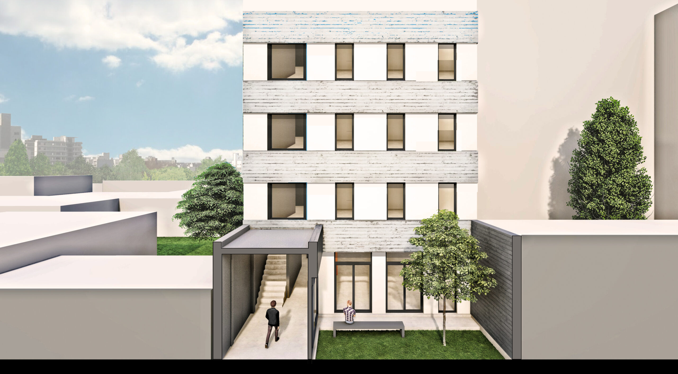 La intervención en la sede tiene lugar en el sector posterior del inmueble, detallaron los arquitectos y contempla “la construcción, en unos casi 500 m2 de obra organizados en tres niveles, de 2 aulas para 40 personas, 1 aula para 60 personas, un SUM, 6 consultorios destinados a la prestación y formación en la actividad clínica psicoterapéutica y servicios de apoyo acordes a las normas de accesibilidad vigentes”.