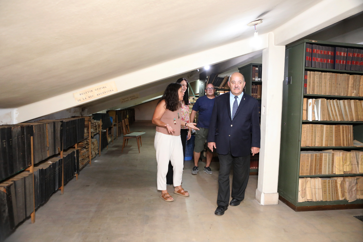 Durante la visita a la Biblioteca Pública de la UNLP, Tauber mantuvo un encuentro con su directora y vicedirectora, Marcela Fushimi y María Eugenia Costa para analizar los detalles de la primera etapa del Plan de Remodelación de Espacios Físicos del histórico edificio.