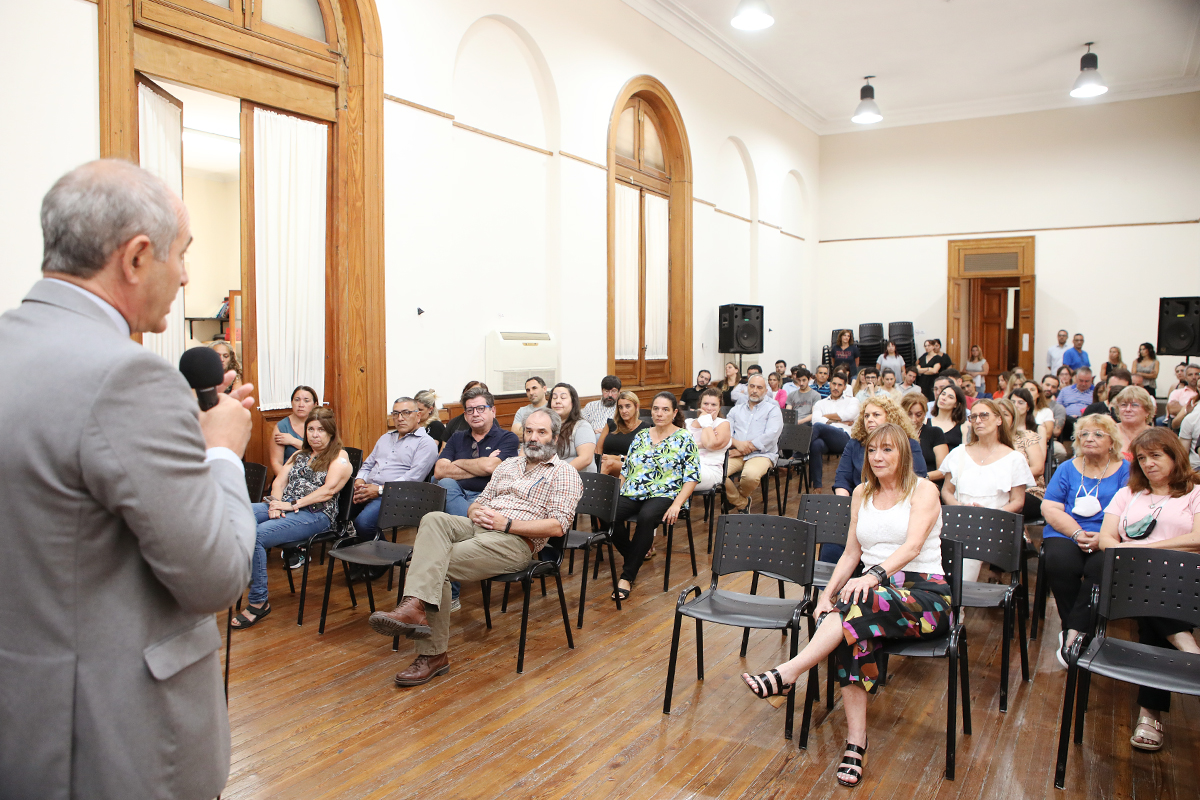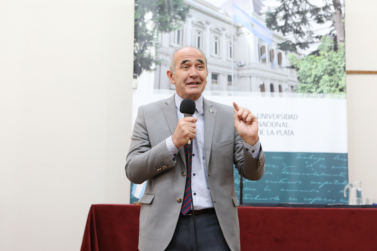 El acto tuvo lugar en la Sala del Consejo Superior del Edificio de la Presidencia, encabezado por el presidente de la UNLP, Martín López Armengol, el secretario General, Patricio Lorente, el secretario de Extensión Universitaria, Sebastián Palma, y la auditora interna, Mercedes Molteni.
