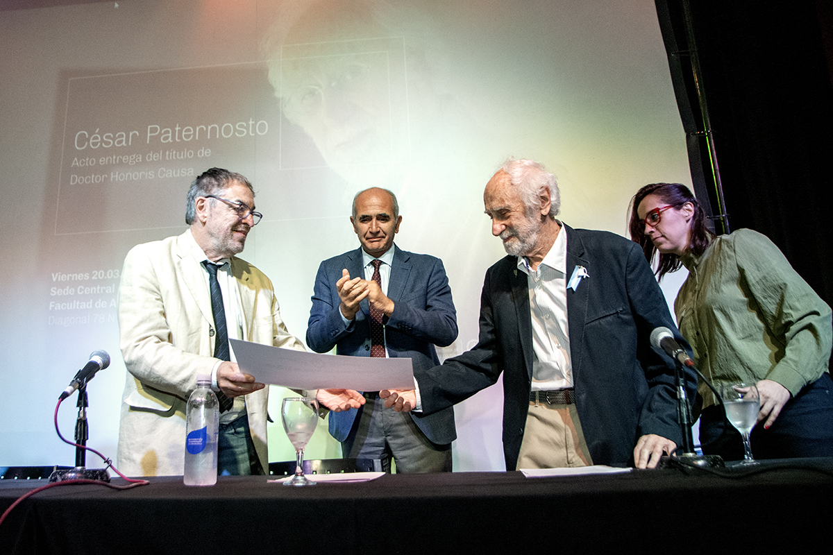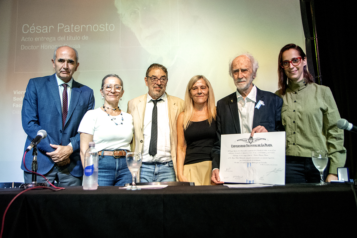 La Universidad Nacional de La Plata distinguió con el título de Doctor Honoris Causa al reconocido artista platense César Paternosto. El acto tuvo lugar en la Facultad de Artes y fue encabezado por el presidente de la UNLP, Martín López Armengol; la secretaria de Arte y Cultura de la Universidad, Mariel Ciafardo; el decano de esa unidad académica, Daniel Belinche, y su vicedecano, Juan Pablo Fernández. Asistieron, además, autoridades, docentes, nodocentes, estudiantes y miembros de la comunidad universitaria.
