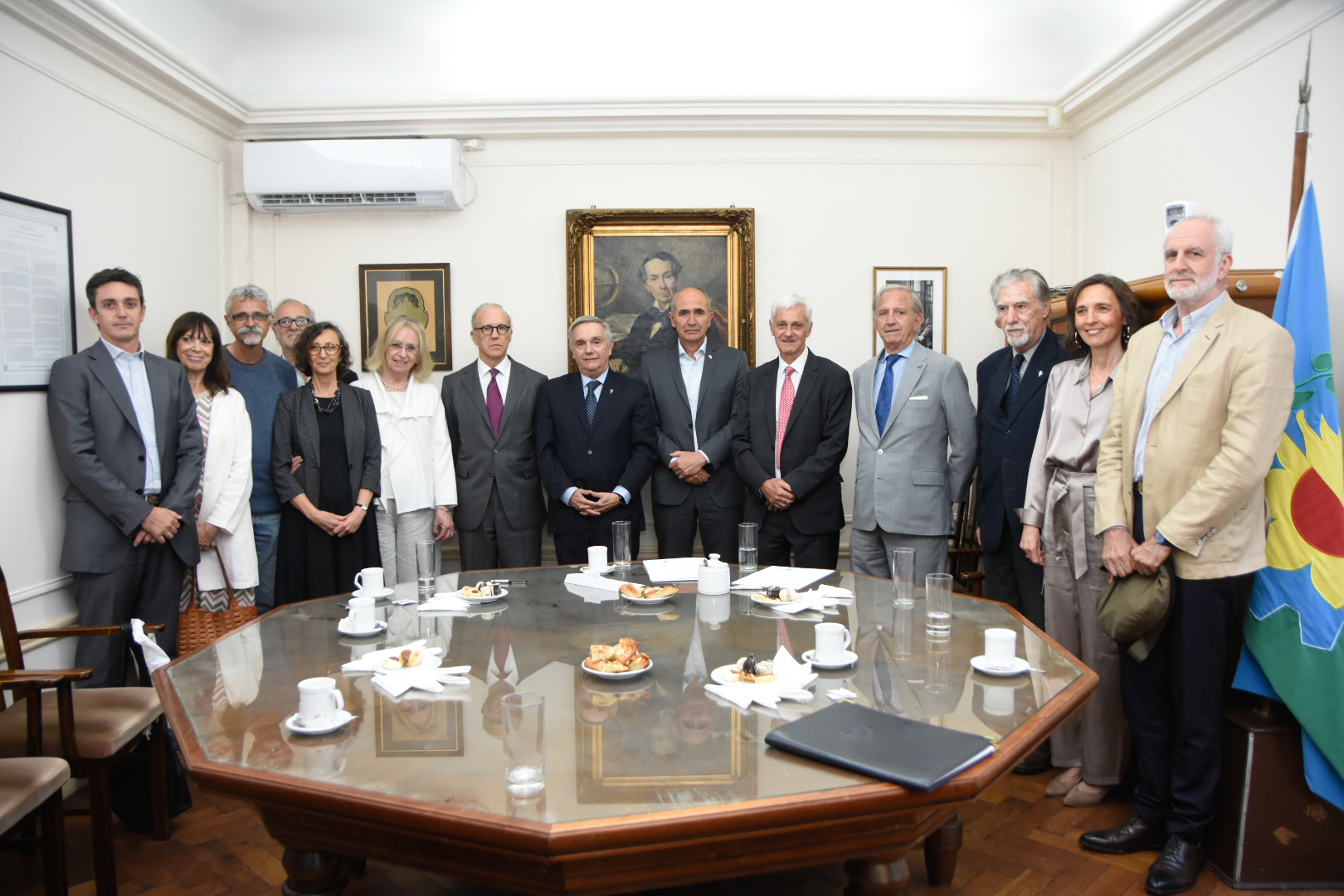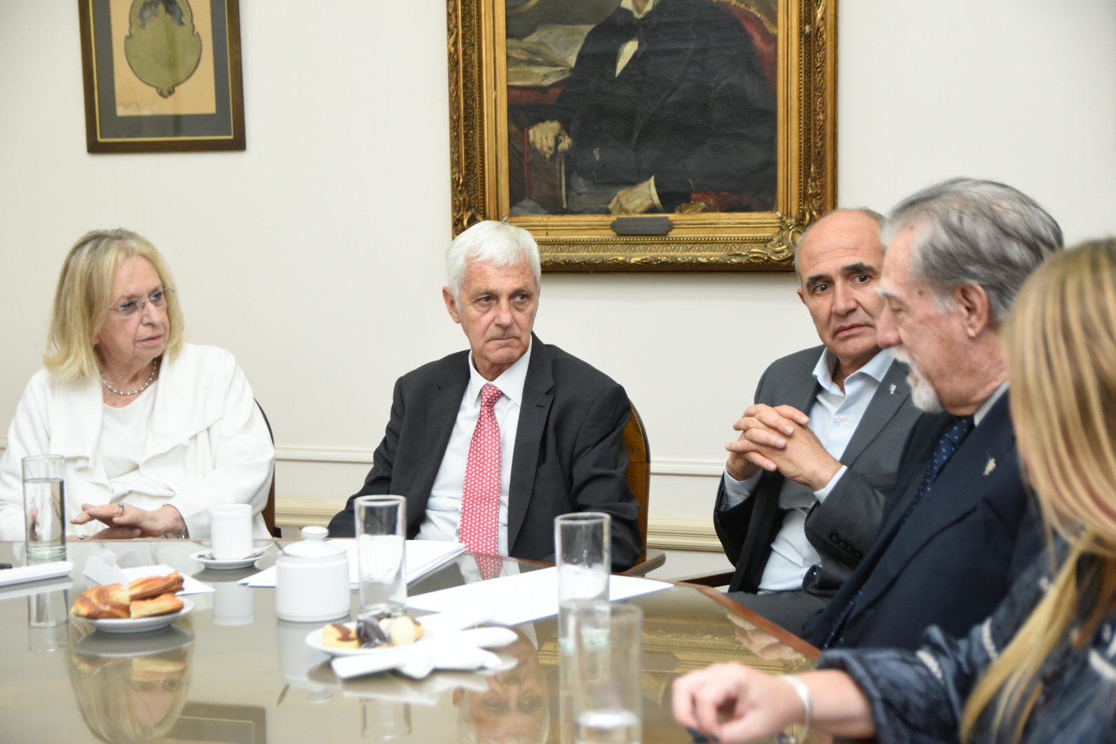 El presidente de la UNLP, Martín López Armengol junto al decano de Derecho, Miguel Berri, mantuvieron un encuentro previo a la ceremonia, que luego fue protagonizada por los hijos de Genero Carrió, quienes fueron los encargados de recibir el simbólico diploma.