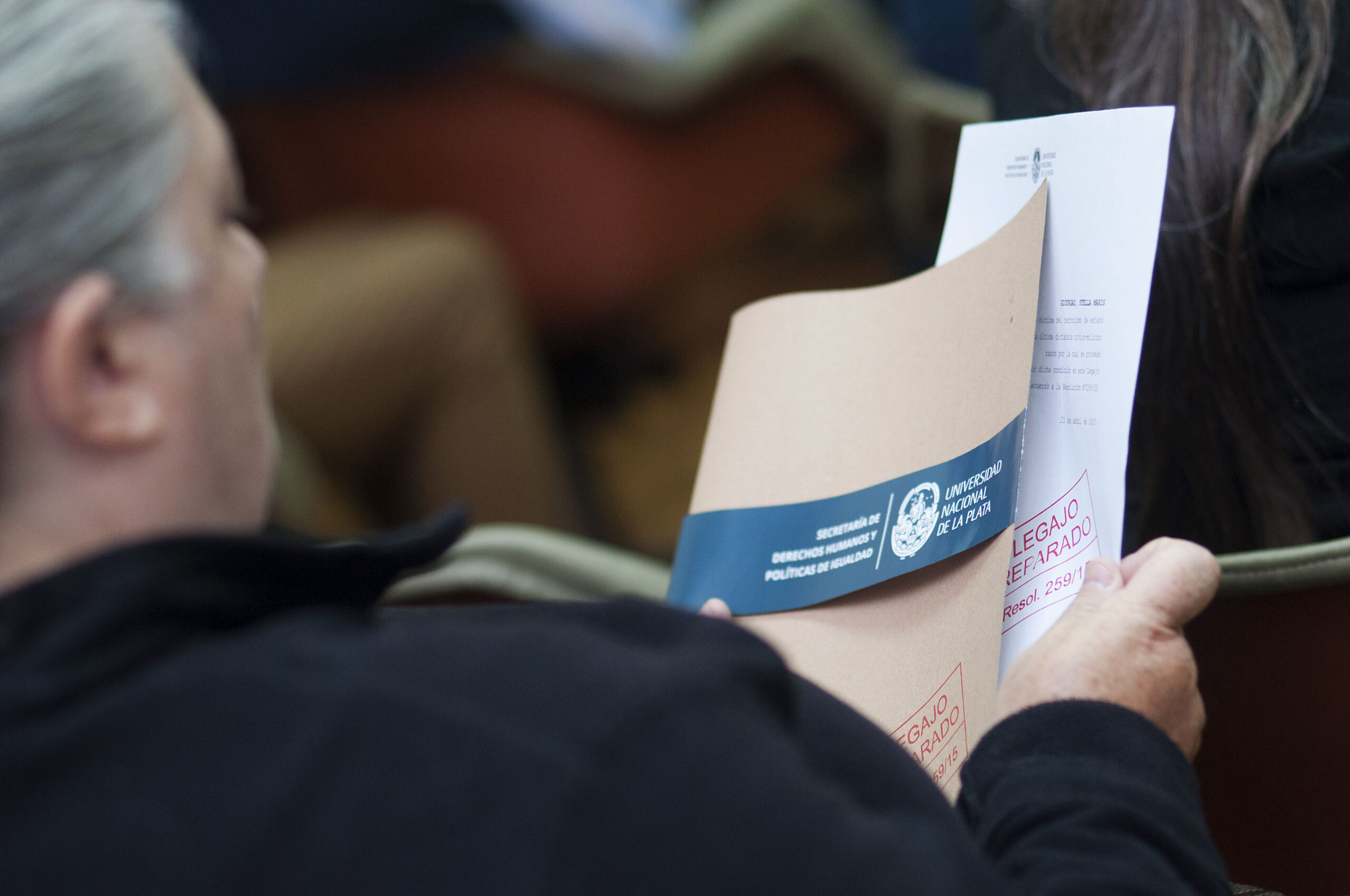 La Universidad Nacional de La Plata entregó esta tarde 20 legajos reparados de graduados, estudiantes, y trabajadores de la Facultad de Ciencias Agrarias y Forestales que fueron víctimas del terrorismo de Estado.