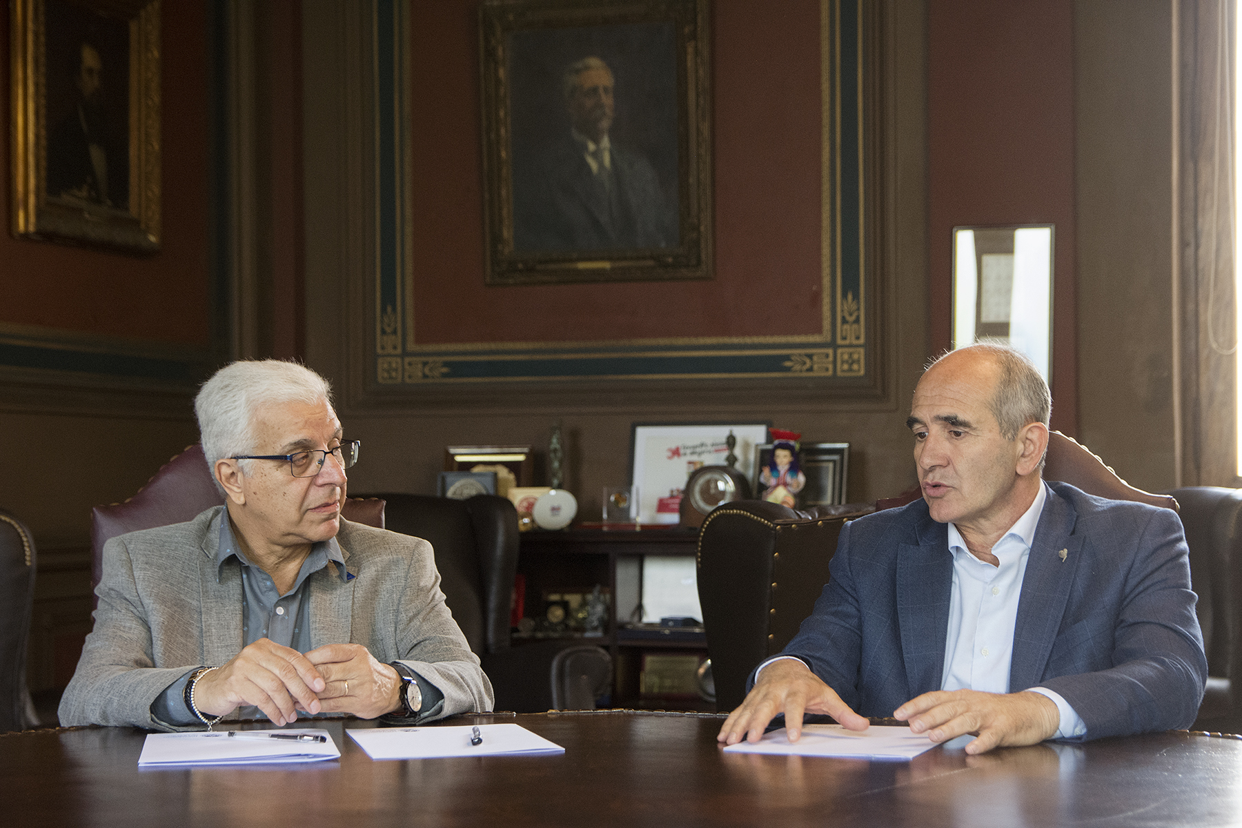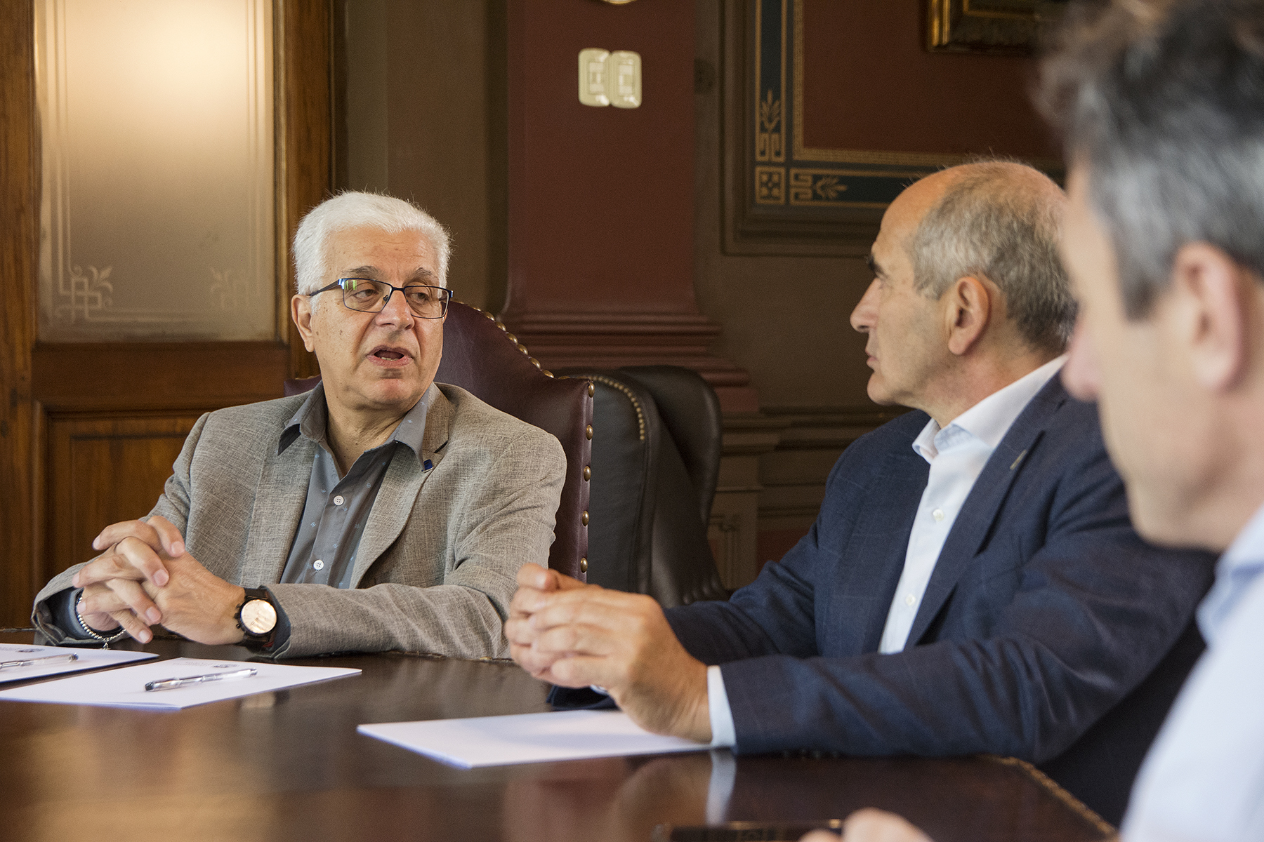 El presidente de la UNLP, Martín López Armengol junto al decano de la unidad académica, Gustavo Páez, y el titular de la UPE, Daniel Galli participaron del encuentro que tuvo lugar en el Rectorado.