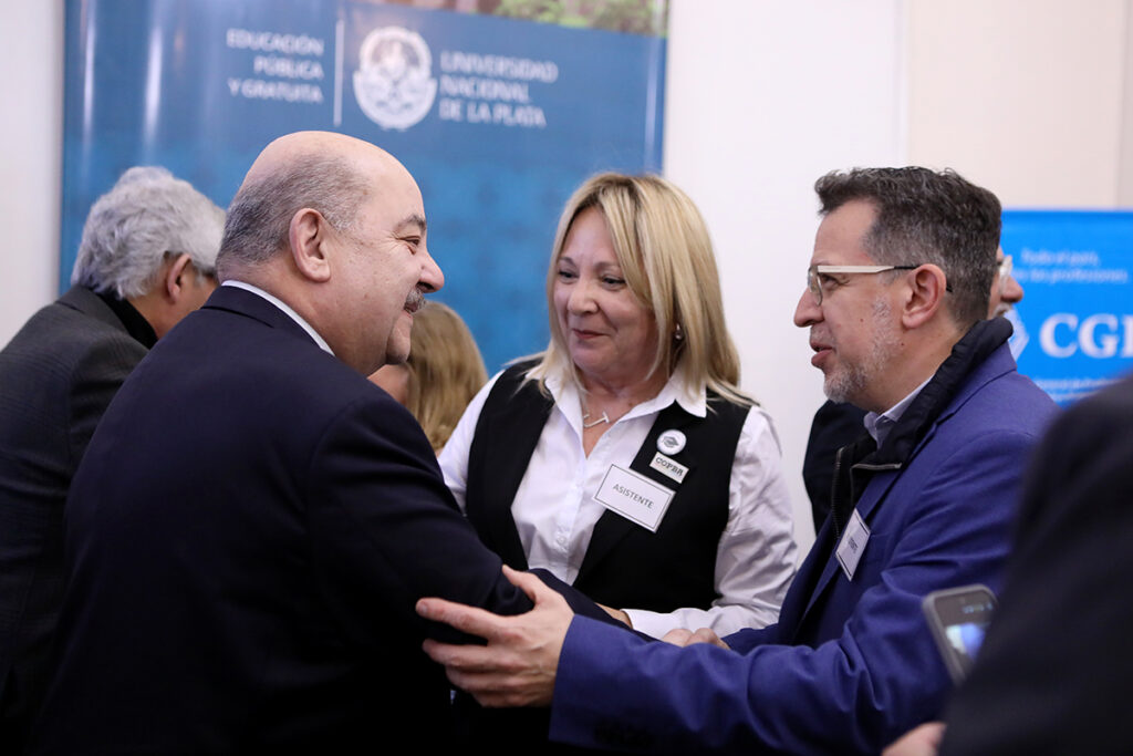 El vicepresidente Académico de la Universidad Nacional de la Plata, Fernando Tauber participó hoy de la apertura del VII Encuentro Nacional de Graduados/as y Organizaciones Profesionales, un espacio para debatir los desafíos actuales del ejercicio profesional. Estuvo acompañado por el presidente de la Federación de Entidades Profesionales Universitarias de la Provincia de Buenos Aires, (FEPUBA) Daniel Delpino y el titular de la Confederación General de Profesionales (CGP), Román Ezequiel de la Torre.