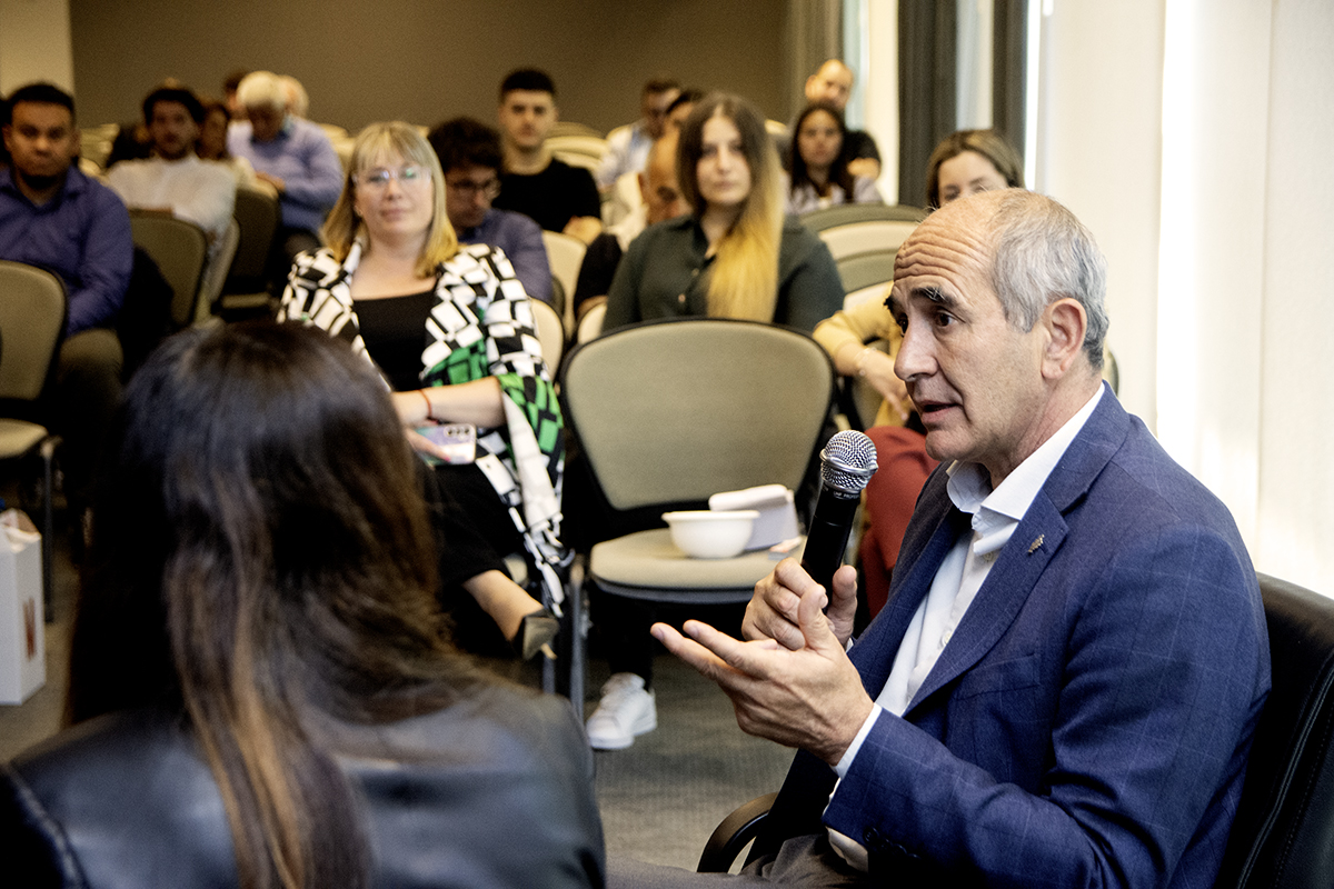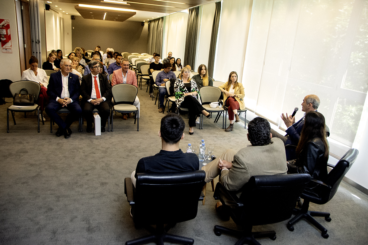 El titular de la UNLP ofició de moderador del panel titulado “El valor de la gestión: diálogo con empresarios de la región” donde expusieron Eugenia Ctibor, en representación de la empresa Ctibor; Alejandro Campodónico,por la empresa Campodónico y Luciano Príncipi por la empresa Madexa.
