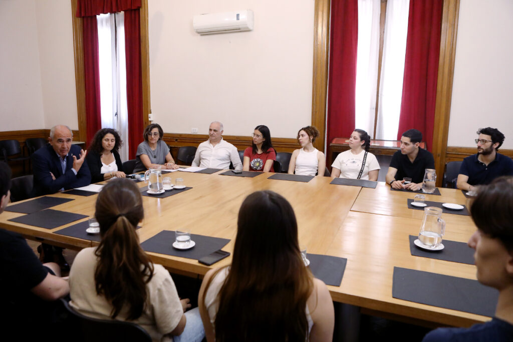 El presidente de la Universidad Nacional de La Plata, Martín López Armengol, recibió en la sede del Rectorado a una delegación que participó recientemente de las 32º Jornadas de Jóvenes Investigadores, organizadas por la Asociación de Universidades Grupo Montevideo, en la Universidad Nacional de Tucumán. En la recepción estuvo acompañado por la prosecretaria de Relaciones Institucionales, Graciela Humbert Lan y la coordinadora de Relaciones Internacionales, Natacha Guiñazú.