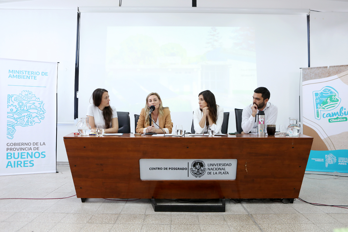 La vicepresidenta Institucional de la Universidad Nacional de La Plata, Andrea Varela, participó junto a la ministra de Ambiente bonaerense, Daniela Vilar, de la apertura de la Mesa Interministerial por el Cambio Climático, un espacio de intercambio para definir políticas públicas en materia ambiental.