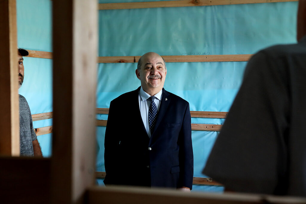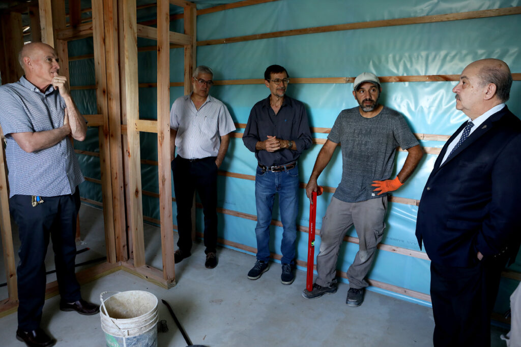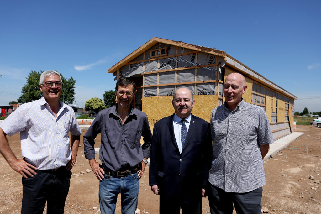 El vicepresidente Académico de la Universidad Nacional de La Plata, Dr. Arq. Fernando Tauber, recorrió esta mañana el barrio de la localidad de Punta Lara, Ensenada, donde se construyen las viviendas sociales de madera desarrolladas por la UNLP, que serán destinadas a los sectores más postergados de la región.