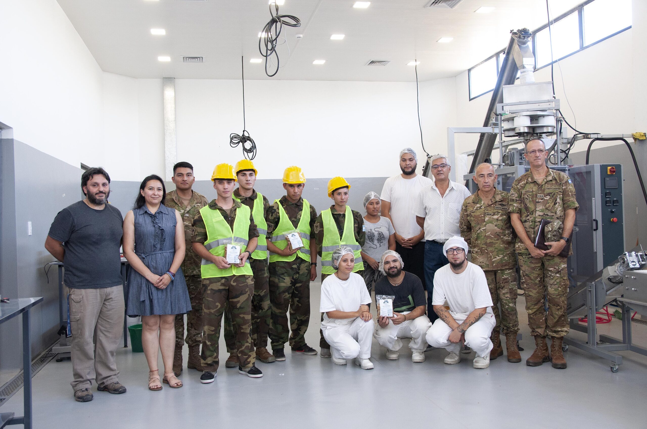 Del acto de entrega participaron el Secretario de Producción de la UNLP, Daniel Tovio, el responsable operativo de la Planta de Alimentos para la Integración Social, Juan Manuel Santillán y los coroneles Soria y Núñez de la Dirección de Intendencia del Ejército.