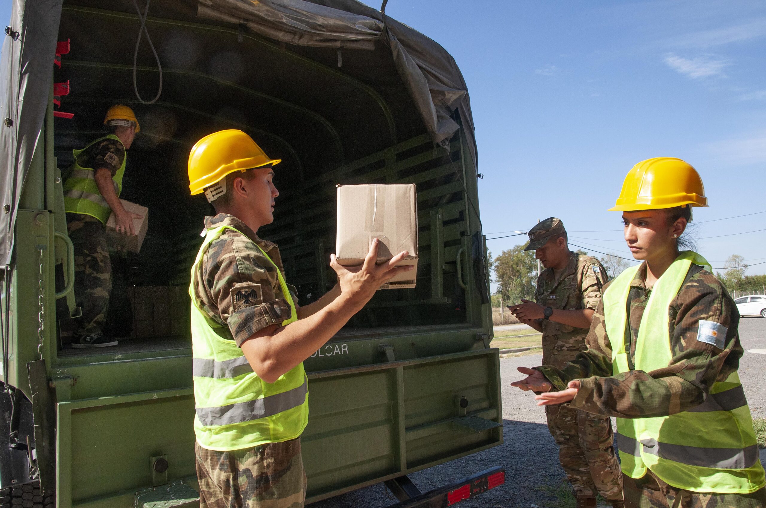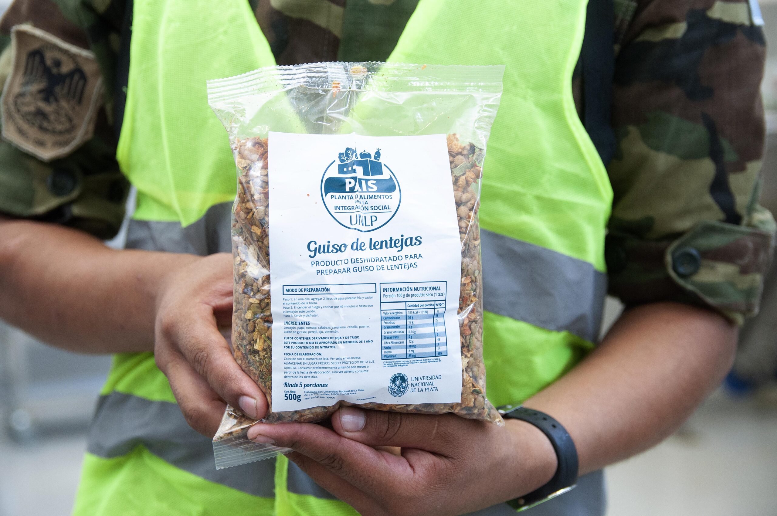 A partir de un convenio firmado entre la Universidad Nacional de La Plata y el Ejército Argentino, se estableció la compra de 244 mil raciones de menú de campaña deshidratado, que serán entregados en los próximos meses. En esta oportunidad se realizó una primera entrega de alimentos deshidratados empaquetados, que constó de 20 mil raciones.