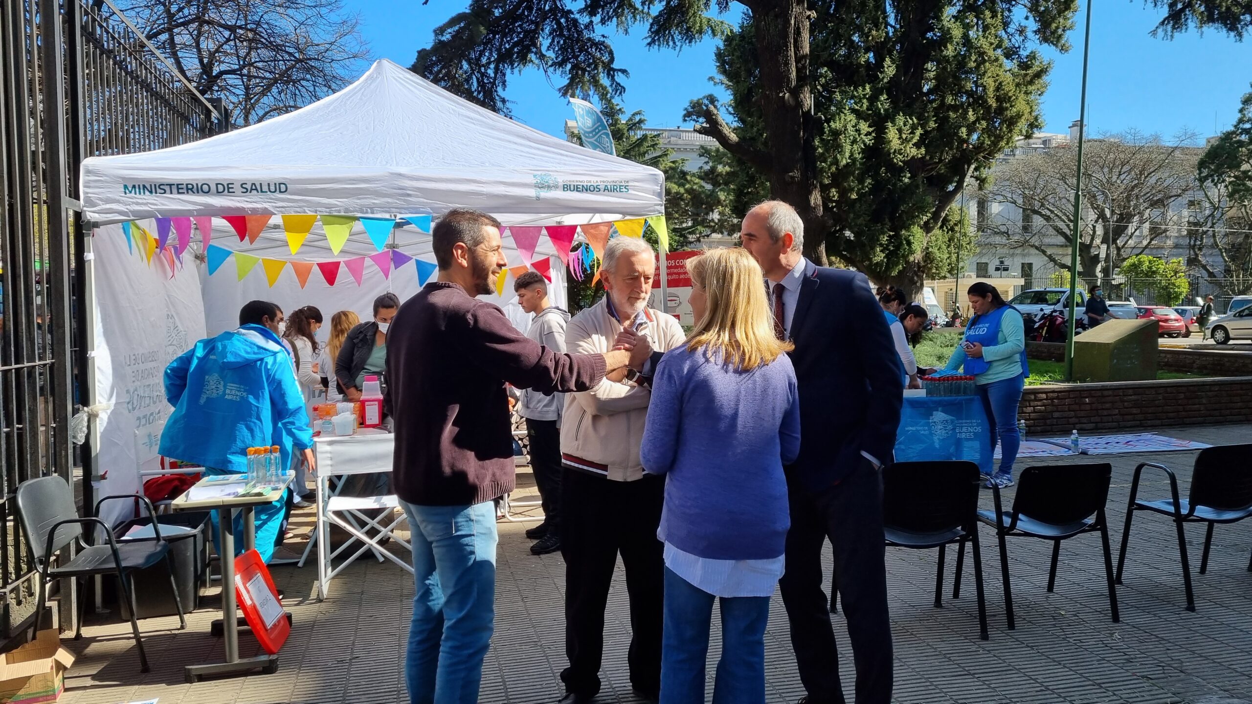 El presidente de la UNLP, Martín López Armengol, el vicepresidente Académico, Fernando Tauber, acompañados por el secretario de Salud, Sergio Lazo, participaron de la actividad que tuvo lugar de 10 a 14 horas, en los jardines del Rectorado.