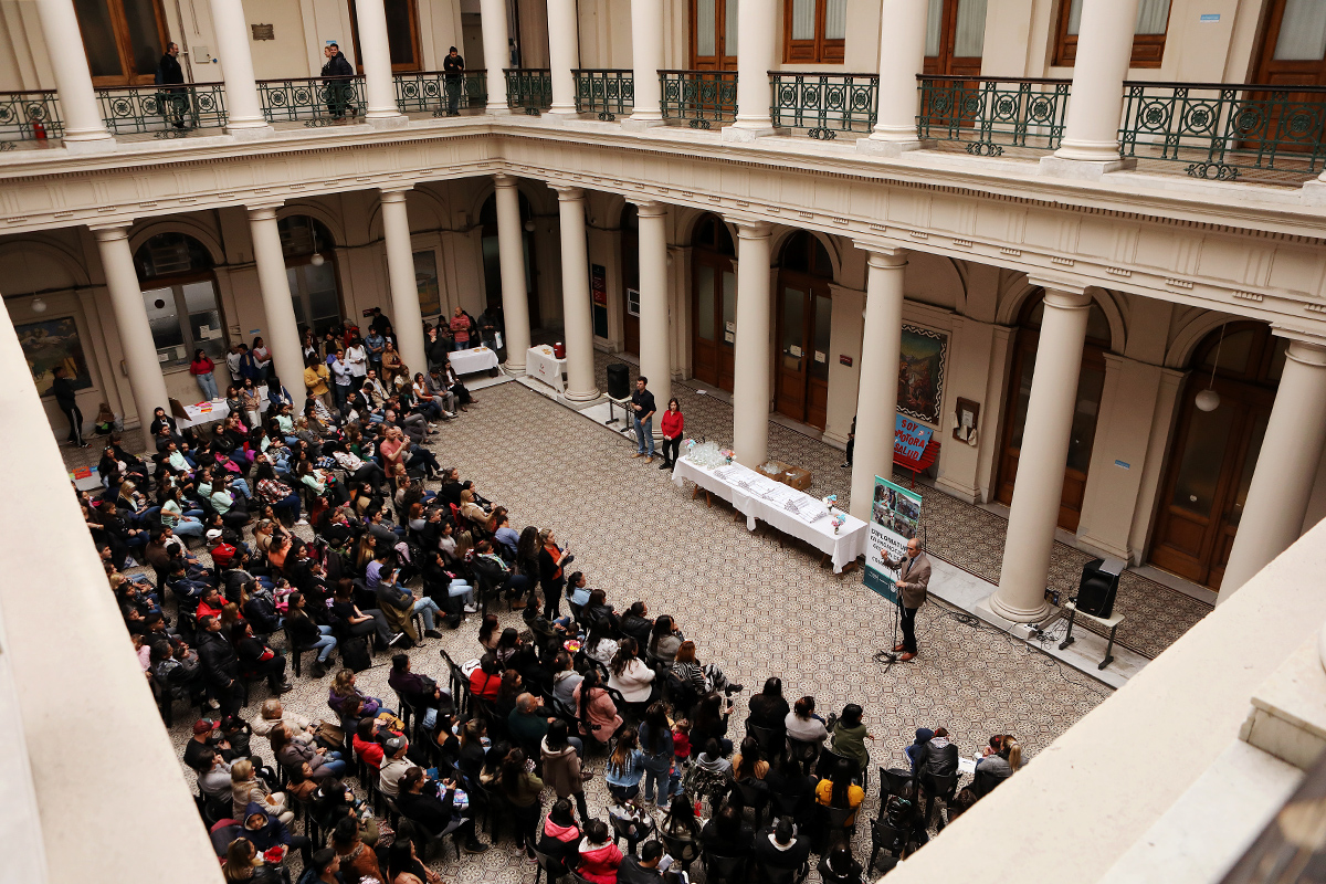 La ceremonia se realizó en el patio del Rectorado y contó con la participación del presidente de la UNLP Martín López Armengol, el prosecretario de Salud, Manuel Fonseca, la directora del Consejo Social, Inés Iglesias y la subsecretaria de Gestión de la Información, Educación Permanente y Fiscalización de la provincia de Buenos Aires Leticia Ceriani. También estuvieron presentes decanos y autoridades de las facultades.