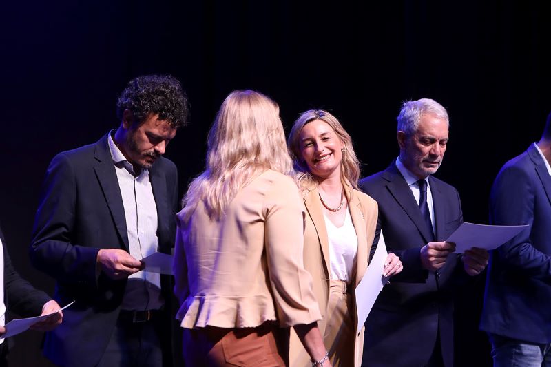 La Municipalidad de La Plata entregó los premios Joaquín V. González a las y los estudiantes con mejores promedios de la Universidad Nacional de La Plata, que se realizó en el Teatro Coliseo Podestá. Allí estuvo presente la vicepresidenta del área Institucional, Andrea Varela junto con el intendente de La Plata, Julio Alak, decanos y decanas, representantes de distintas unidades académicas y concejales de la ciudad.