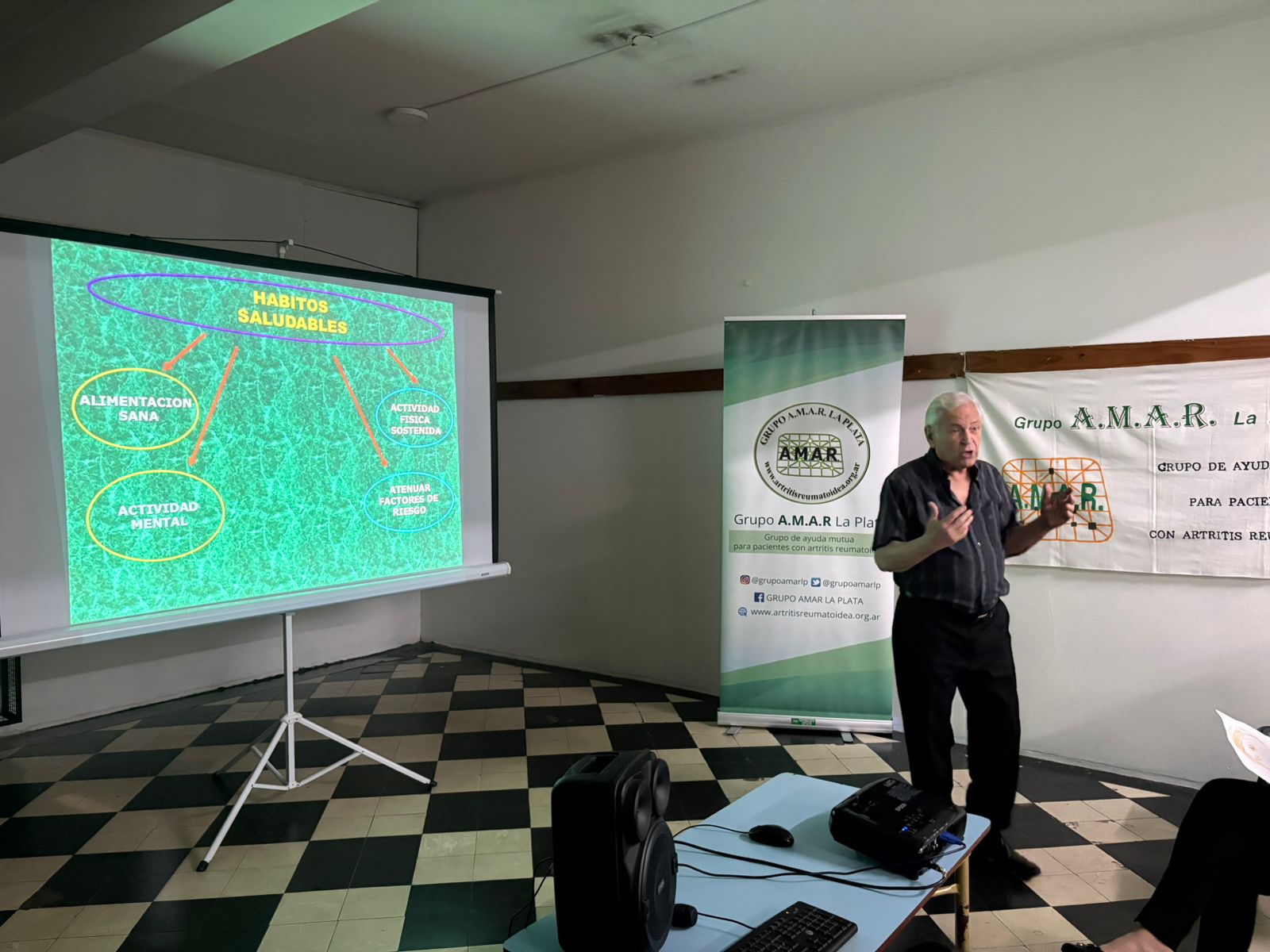 En virtud del convenio entablado entre la Secretaría de Relaciones Institucionales de la Universidad Nacional de La Plata, por medio de la Mesa de Trabajo de Personas Mayores, y la Biblioteca Euforión, se realizó el Taller para visibilizar la Artritis Reumatoidea, presentado por el Grupo A.M.A.R. La Plata (Ayuda Mutua Artritis Reumatoidea). El encuentro, desarrollado en la sede de Euforión el pasado jueves 20 de noviembre, tuvo el objetivo de informar sobre la importancia del diagnóstico temprano de la enfermedad, las formas de presentación y los síntomas, los factores de riesgo, el tratamiento multidisciplinario, la alimentación antiinflamatoria, los beneficios de la actividad física en las personas mayores, entre otros.