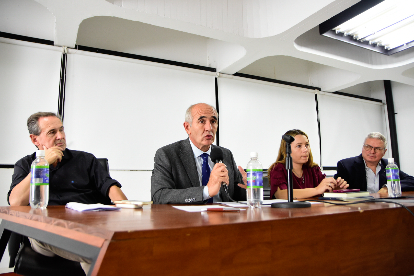 Luego de la apertura y agradecimientos por parte del secretario de Relaciones Institucionales, Javier Mor Roig, presentaron exposiciones el director de la Cátedra Libre Hipólito Yrigoyen, César Arrondo; el director de la Cátedra Libre Ricardo Balbín, Pedro Espondaburu; la secretaria General de Franja Morada Nacional, Antonella Bormapé, y el presidente de la UNLP, Martín López Armengol.